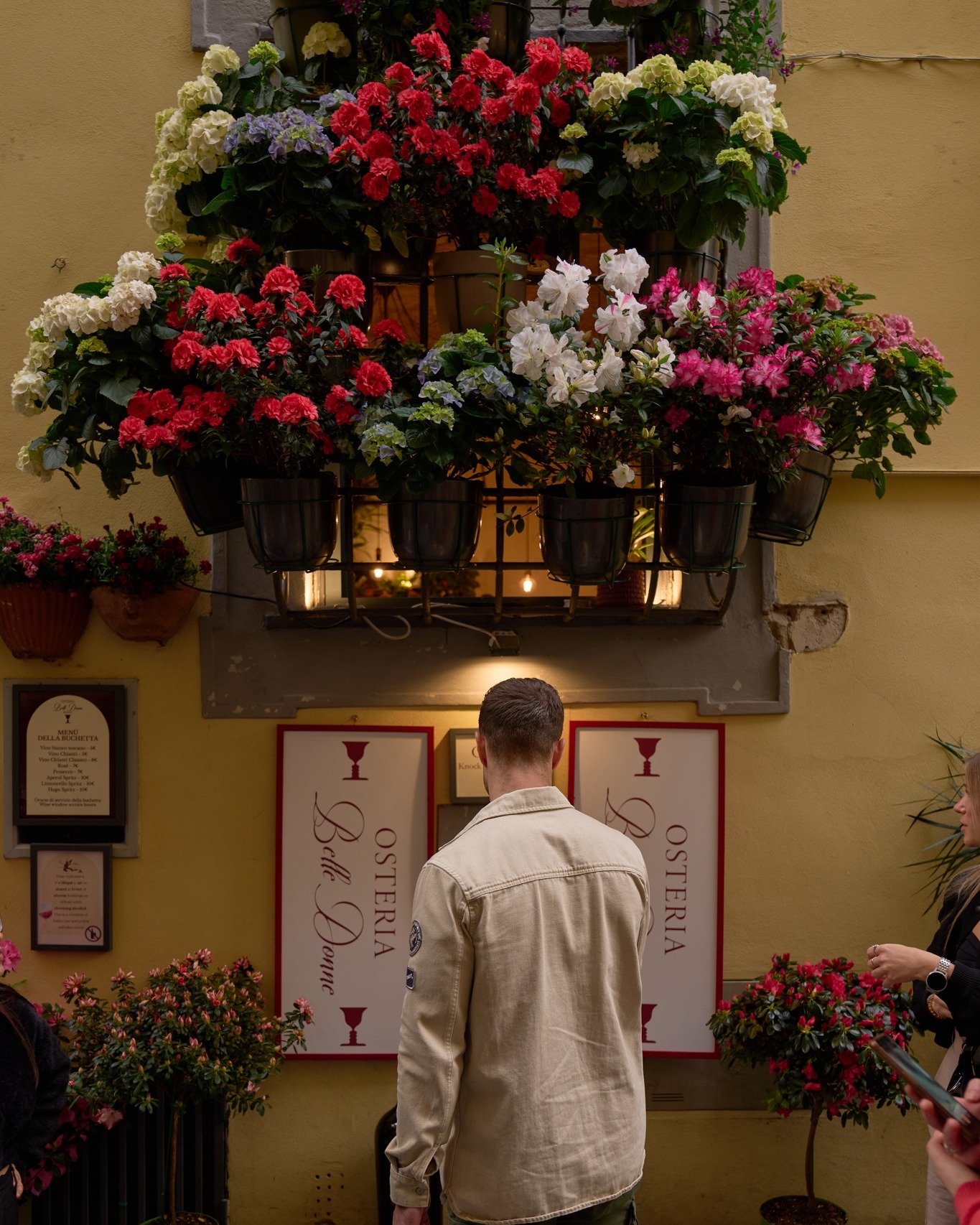 Υπέροχο και άκρως «ινσταγκραμικό», το «παράθυρο του κρασιού» στο εστιατόριο Osteria Belle Donne είναι, κατά πάσα πιθανότητα, εκείνο που έχετε δει περισσότερες φορές στα social media. Το πανέμορφα στολισμένο μπαλκόνι, πλημμυρισμένο με λουλούδια, ακριβώς πάνω από το παράθυρο, καθώς και οι δύο ταμπέλες με την επωνυμία του εστιατορίου αριστερά και δεξιά, σίγουρα θα σας βοηθήσουν να το εντοπίσετε από μακριά. Δεν είναι τυχαίο, άλλωστε, που αποτελεί ένα από τα αγαπημένα spot ντόπιων και επισκεπτών.
