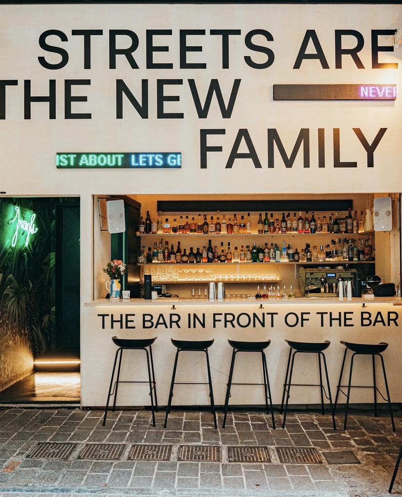 Η νέα είσοδος από την Αθήνα ξεκίνησε κυριολεκτικά ως σκαλωσιά μπροστά από το κανονικό bar που ετοιμαζόταν. Από προσωρινή λύση έγινε μόνιμος χώρος με δική του ταυτότητα. Οι ιδρυτές Αλέξανδρος Τσελεπής, Κωνσταντίνος Θεοδωρακόπουλος και Συμεών Παπανικολάου εστιάζουν σε κλασικές συνταγές, εποχιακά υλικά και μηδενικά απόβλητα.