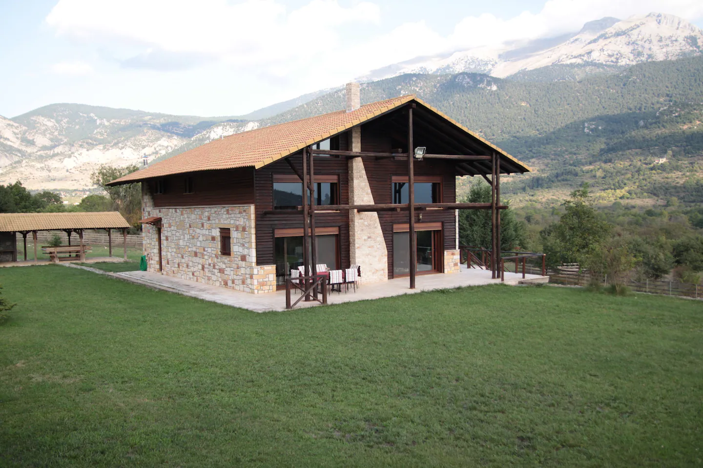 Στο ισόγειο υπάρχει ένα μεγάλο σαλόνι με εντυπωσιακές τζαμαρίες, μία πλήρως εξοπλισμένη κουζίνα για την προετοιμασία των γευμάτων σας, ένα υπνοδωμάτιο και ένα μπάνιο με μπανιέρα. Στον πρώτο όροφο θα βρείτε δύο κρεβατοκάμαρες με διπλά κρεβάτια, ένα υπνοδωμάτιο με διπλή κουκέτα και ένα μπάνιο με wet room. Το στυλ της κατοικίας παραπέμπει σε σαλέ των Άλπεων και θα γίνει ένα ονειρεμένο καταφύγιο για μία απόδραση με original oρεινό χαρακτήρα.