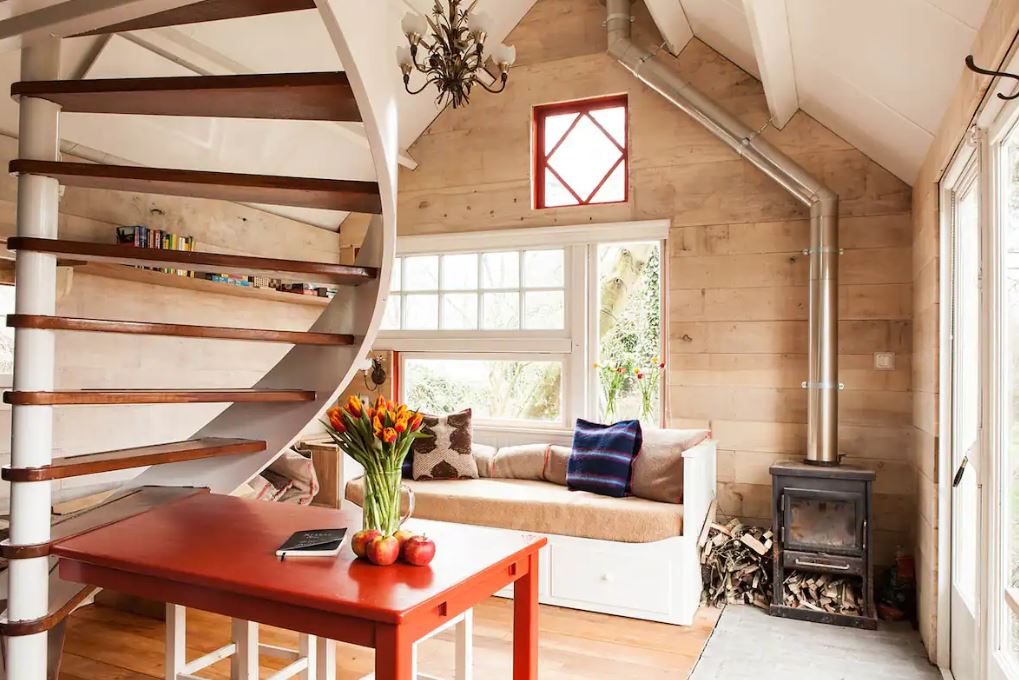 Για ένα σκηνικό πολύ διαφορετικό από τα γραφικά, πολύβουα κανάλια, επιβιβαστείτε στο φέρρυ για το Amsterdam Noord, την ταχύτατα αναπτυσσόμενη περιοχή της ολλανδικής πρωτεύουσας, όπου εγκαθίσταται ένα κύμα νέων κι επιτυχημένων επαγγελματιών χάρη στην άμεση πρόσβαση με τη νέα γραμμή του μετρό, που κινείται κάτω από τον υδάτινο όγκο του IJ. Εκμεταλλευόμενο πλήρως τους χώρους, το «Little House in the Garden» είναι ένα αγροτόσπιτο με ξύλινα δοκάρια, σόμπα ξυλίας, φωτεινά χρώματα και άνετα, ζεστά κρεβάτια. Το σπιτάκι προσφέρεται για τετραμελή οικογένεια καθώς διαθέτει ένα υπνοδωμάτιο και μια μικροσκοπική σοφίτα με δύο ανεξάρτητα κρεβάτια. Στη διάθεσή σας είναι και το εξωτερικό BBQ, η μικρή λίμνη-πισίνα και ο κήπος με τις αχλαδιές και τις κερασιές, ανάμεσα στις οποίες περιφέρονται κότες. Και το σημαντικότερο, αυτή η επιτομή ενός αειφόρου καταλύματος δεν απέχει παρά μια σύντομη διαδρομή από το κέντρο της πόλης.