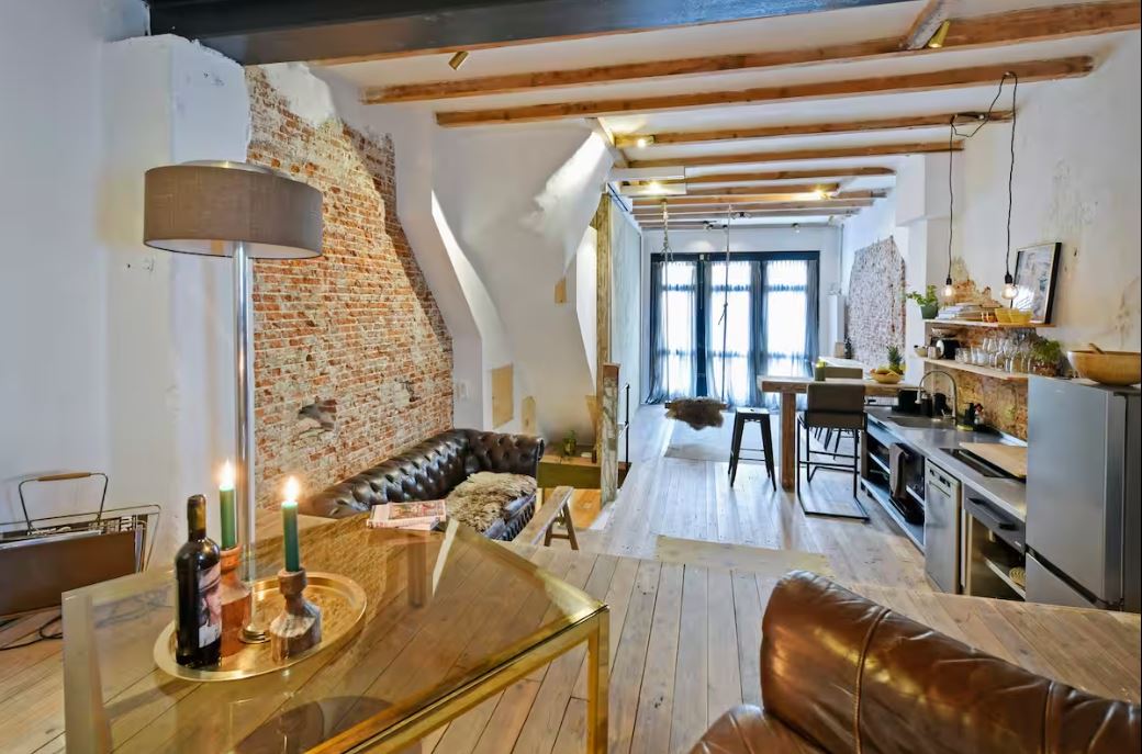 Με εξωτερικό καλυμμένο από κόκκινα τούβλα, αφαιρετικούς τόνους στο εσωτερικό, αλλά και πολλά παράθυρα που δημιουργούν μια ανάλαφρη αίσθηση, το ισόγειο αυτό διαμέρισμα είναι ιδανική βάση για ένα ζευγάρι που αποζητά τη χαλάρωση μετά από μια μέρα περιήγησης στα αξιοθέατα.