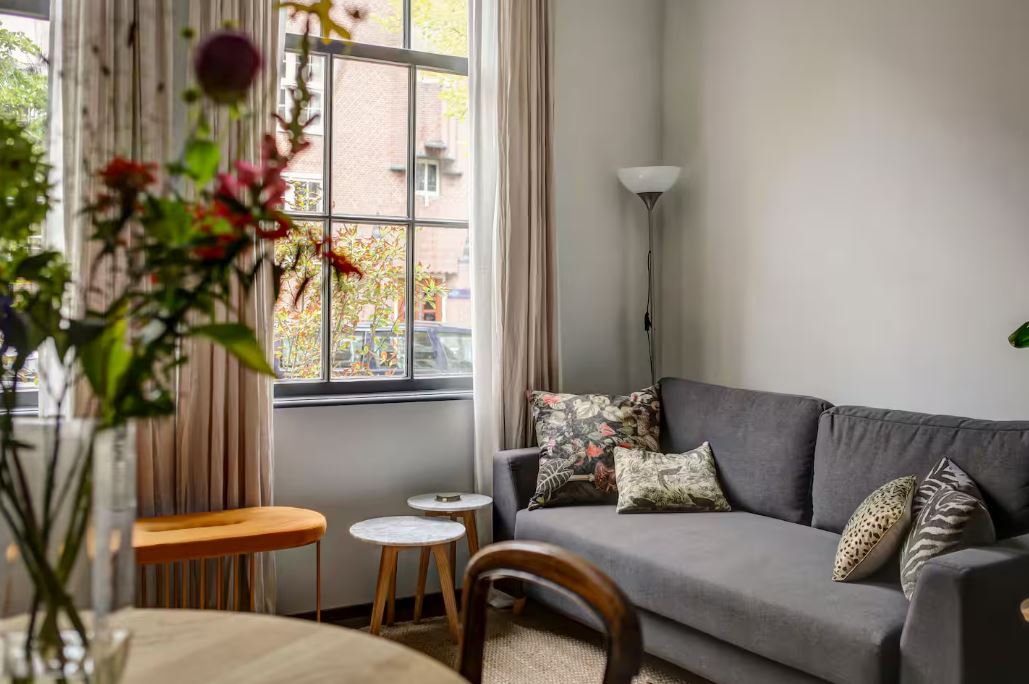 Στην περιοχή που προσφέρει μια απολύτως γραφική εμπειρία του Άμστερνταμ –πλακόστρωτοι δρόμοι, γέφυρες με παρατεταγμένα ποδήλατα και κρεμαστά καλάθια, μικροσκοπικά μπαρ και cool café-, αυτό το πρόσφατα ανακαινισμένο και με ιδιαίτερα υψηλή βαθμολογία διαμέρισμα πλησίον της πλατείας Leiden, αποτελεί ιδανική βάση εξόρμησης ενός οικογενειακού ταξιδιού. Τα δύο μεγάλα υπνοδωμάτια μπορούν να φιλοξενήσουν 4 άτομα, κάτι που κάνει το χώρο κατάλληλο επίσης για δύο ζευγάρια ή μια παρέα φίλων. Στον δύο επιπέδων χώρο υπάρχει μάλιστα και καθιστικό –κάτι ασυνήθιστο για τις κατοικίες της ολλανδικής πρωτεύουσας-, ευρύχωρη ανοιχτή κουζίνα, ακόμη και ιδιωτικό υπόγειο πάρκινγκ. Οι απαλοί τόνοι και το ανοιχτόχρωμο ξύλο κάνουν τους στιλάτους χώρους φωτεινούς κι ανάλαφρους, ενώ το γρήγορο WiFi σας επιτρέπει να δουλέψετε από το σπίτι αν κι εφόσον χρειαστεί.