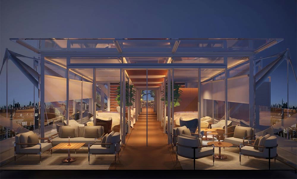 Επίσης, σε όσα μπορούν να απολαύσουν οι πελάτες θα κυριαρχεί η διακριτικότητα. Η βεράντα που θα προσφέρει θέα 360 μοιρών στον ορίζοντα της πόλης θα είναι ανοιχτή μόνο για τους πελάτες του ξενοδοχείου.