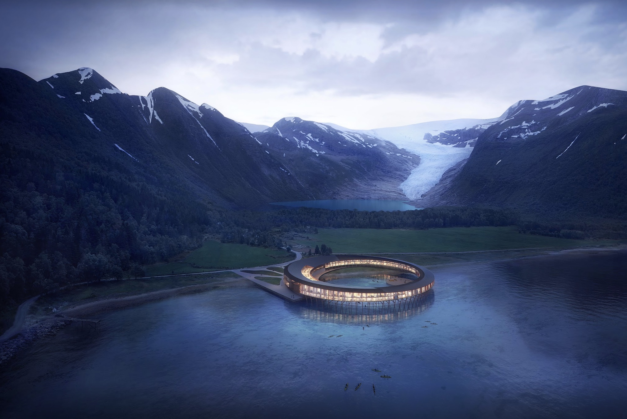 Στη μύτη του παγετώνα Svartisen, στα κρυστάλλινα νερά του φιόρδ Holandsfjorden θα βρίσκεται αυτό το ξενοδοχείο των 94 δωματίων, το οποίο θα συνδυάζει φουτουριστικό σχέδιο και τεχνολογίες, που θα κάνουν χρήση γήινων υλικών, ιδιαίτερα φιλικές στο περιβάλλον. Το ξενοδοχείο αυτό θέλει να είναι πρωτοπόρος στη βιώσιμη φιλοξενία, για το χτίσιμό του θα χρησιμοποιηθεί μόνο ηλιακή ενέργεια ενώ θα έχει το δικό του σύστημα ανακύκλωσης και διαχείρισης απορριμμάτων και υδάτων.
