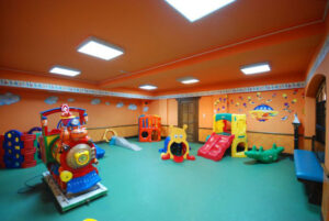 Αμέσως μετά το πρωινό που σερβίρεται καθημερινά στο εστιατόριο του ξενοδοχείου το παιχνίδι αρχίζει. Κούνια στην παιδική χαρά, μία βόλτα στο δάσος με το πολύχρωμο, ξύλινο τρενάκι, γνωριμία με τα ζωάκια του αγροκτήματος, όπως πόνυ, πάπιες, σκυλάκια και γατάκια, ενώ τους καλοκαιρινούς μήνες θα κάνουν βουτιές στην όμορφη παιδική πισίνα που υπάρχει στον εξωτερικό χώρο του ξενοδοχείου.