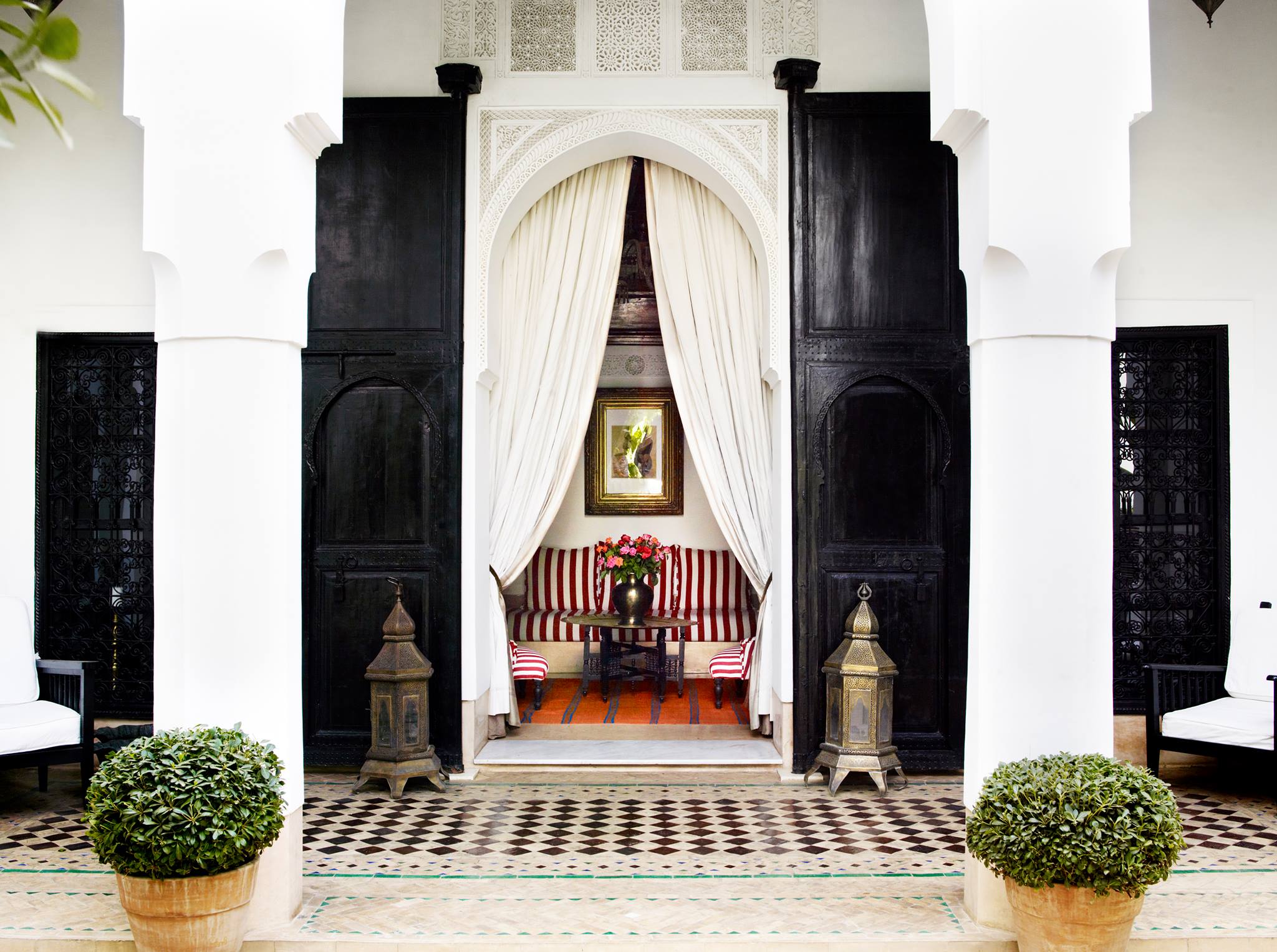 Με ιδιοκτήτη τον Βρετανό σχεδιαστή και γκουρού του στυλ Jasper Conran, δεν είναι τυχαίο που το L’Hotel Marrakech έχει κερδίσει πλήθος μοδάτων θαυμαστών που εκτιμούν το εμπνευσμένο από τη δεκαετία του ’30 ντεκόρ και την προσεκτική ανακαίνιση αυτού του ριάντ του 19ου αιώνα και πρώην ανακτόρου. Σαν ένα μαγικό κρησφύγετο διακοσμημένο με πολυτελή υφάσματα και χειροποίητα έπιπλα ντόπιων τεχνητών, φωλιάζει σε ένα φιδωτό δρομάκι, κοντά σε πολυσύχναστες πλατείες και σουκ. Πίσω από τους τοίχους του, κρύβονται 6 ελκυστικές σουίτες, μια πισίνα θαλασσινού νερού, ένα χαμάμ, οι γεμάτοι χρώματα κι αρώματα κήποι με πορτοκαλιές, συκιές, βουκαμβίλιες και τριαντάφυλλα, αλλά και μια ταράτσα με ξαπλώστρες και θέα στην οροσειρά του Άτλαντα. Θα νοιώσετε σαν φιλοξενούμενοι σε μια πανέμορφη μαροκινή βίλα, από την οποία σίγουρα δεν θα θέλετε να φύγετε.
