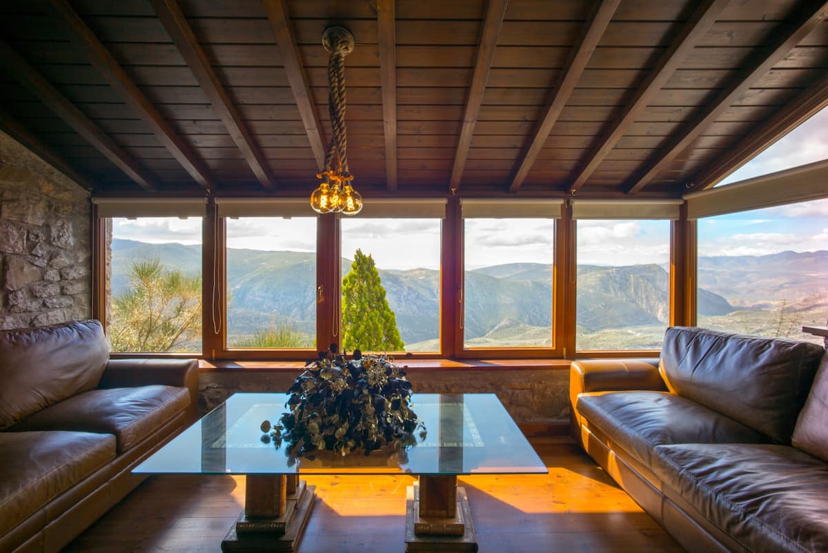 Στο κατάλυμα αυτό, που βρίσκεται δίπλα στα εστιατόρια και τα μπαρ της Αράχωβας και μόνο 15 λεπτά από τον αρχαιολογικό χώρο των Δελφών, κυριαρχεί ο παραδοσιακός συνδυασμός του ξύλου και της πέτρας που δημιουργεί μια ζεστή ατμόσφαιρα σαλέ.