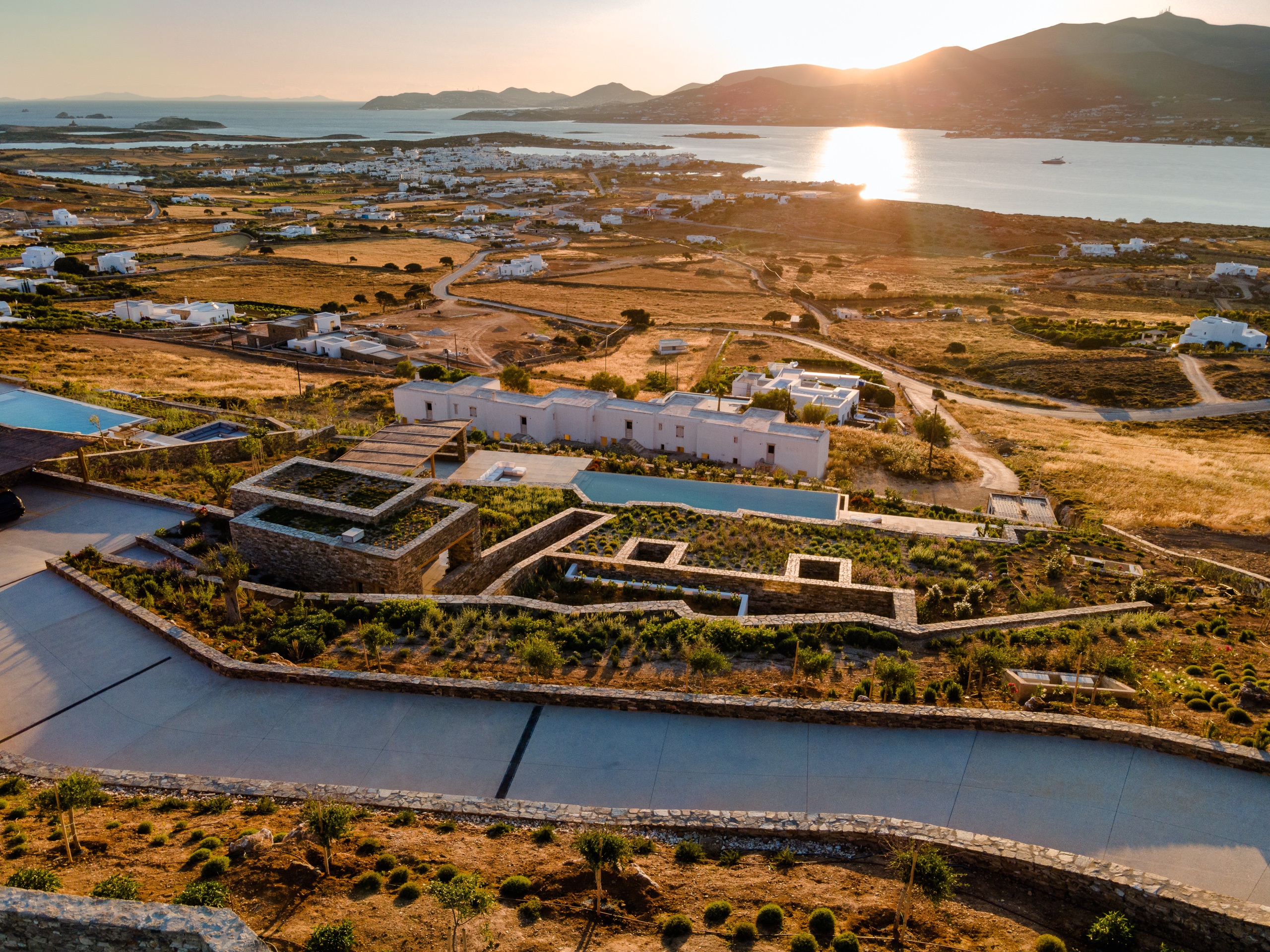 Στην πλαγιά του λόφου, σε τρία ξεχωριστά επίπεδα με θέα τόσο στη γραφική παραλία της Παναγίας, όσο και στα λευκά σπίτια της Χώρας της Αντιπάρου, αυτή η πολυτελής όαση αποτελεί τέλειο χωρικό υπόβαθρο για την απόλαυση του ελληνικού καλοκαιριού.