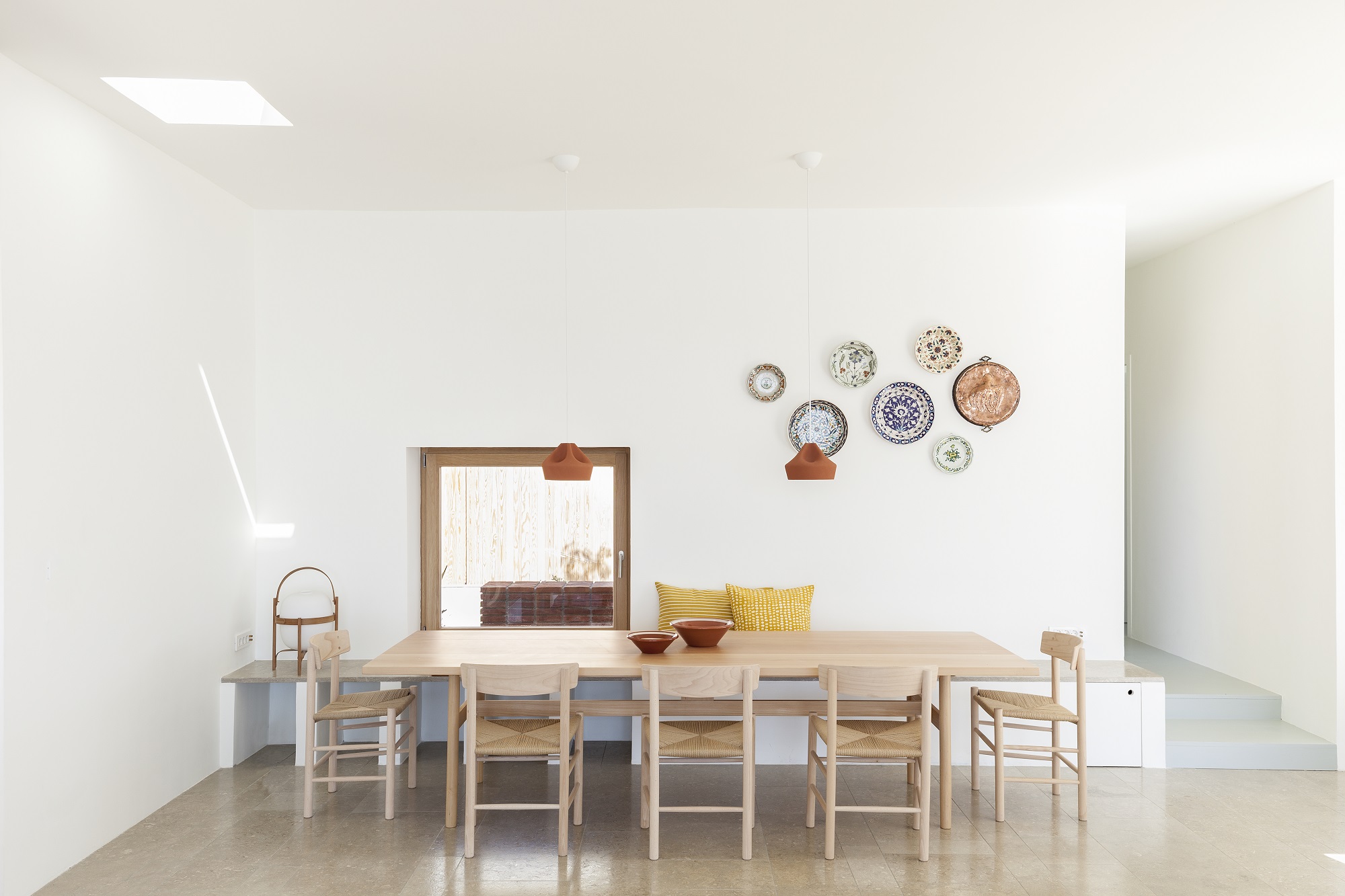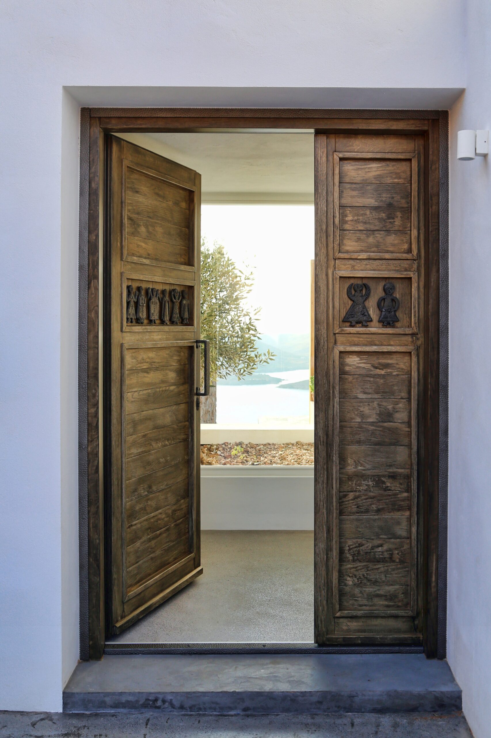 Το εξωτερικό εκτεθειμένο σκυρόδεμα έρχεται σε αντίθεση με το απαλό και ελαφρύ εσωτερικό. Το οποίο κάνει σαφείς αναφορές στην παραδοσιακή αρχιτεκτονική της Καρπάθου, συνδυάζοντάς τη με σκανδιναβικά έπιπλα και μια μεγάλη παλέτα υλικών. Τα διαφορετικών μεγεθών και χαρακτήρα παράθυρα, επιπλέον, είναι προσεκτικά τοποθετημένα ώστε να πλαισιώνουν τη μοναδική θέα στη θάλασσα και στο γύρω τοπίο.