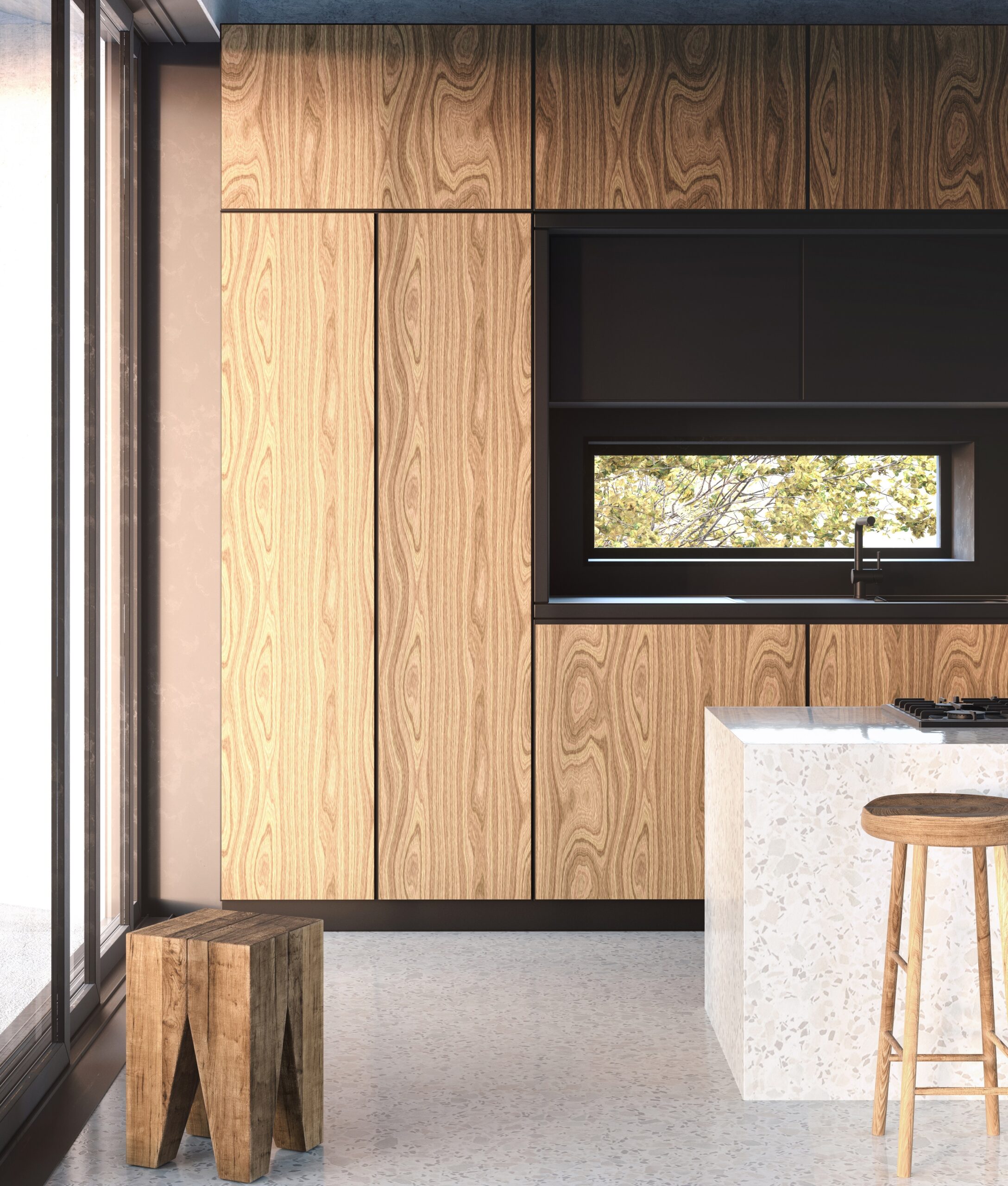 Ο μινιμαλιστικός σχεδιασμός ακολουθείται σε όλο το έργο, από τη συνολική ογκομετρική σύνθεση μέχρι το φινίρισμα των προσόψεων με πλακάκια πορσελάνης, το μαρμάρινο φινίρισμα εσωτερικών/εξωτερικών τοίχων και δαπέδων, το σχέδιο της σκάλας, την κουζίνα, τα κατά παραγγελία έπιπλα από μασίφ ξύλο, ακόμα και τον φωτισμό. Όλα τα υλικά της κατασκευής είναι φυσικά και φιλικά προς το περιβάλλον, ενώ ο βιοκλιματικός σχεδιασμός καθιστά αυτό το σπίτι ενεργειακά αποδοτικό όλο τον χρόνο.