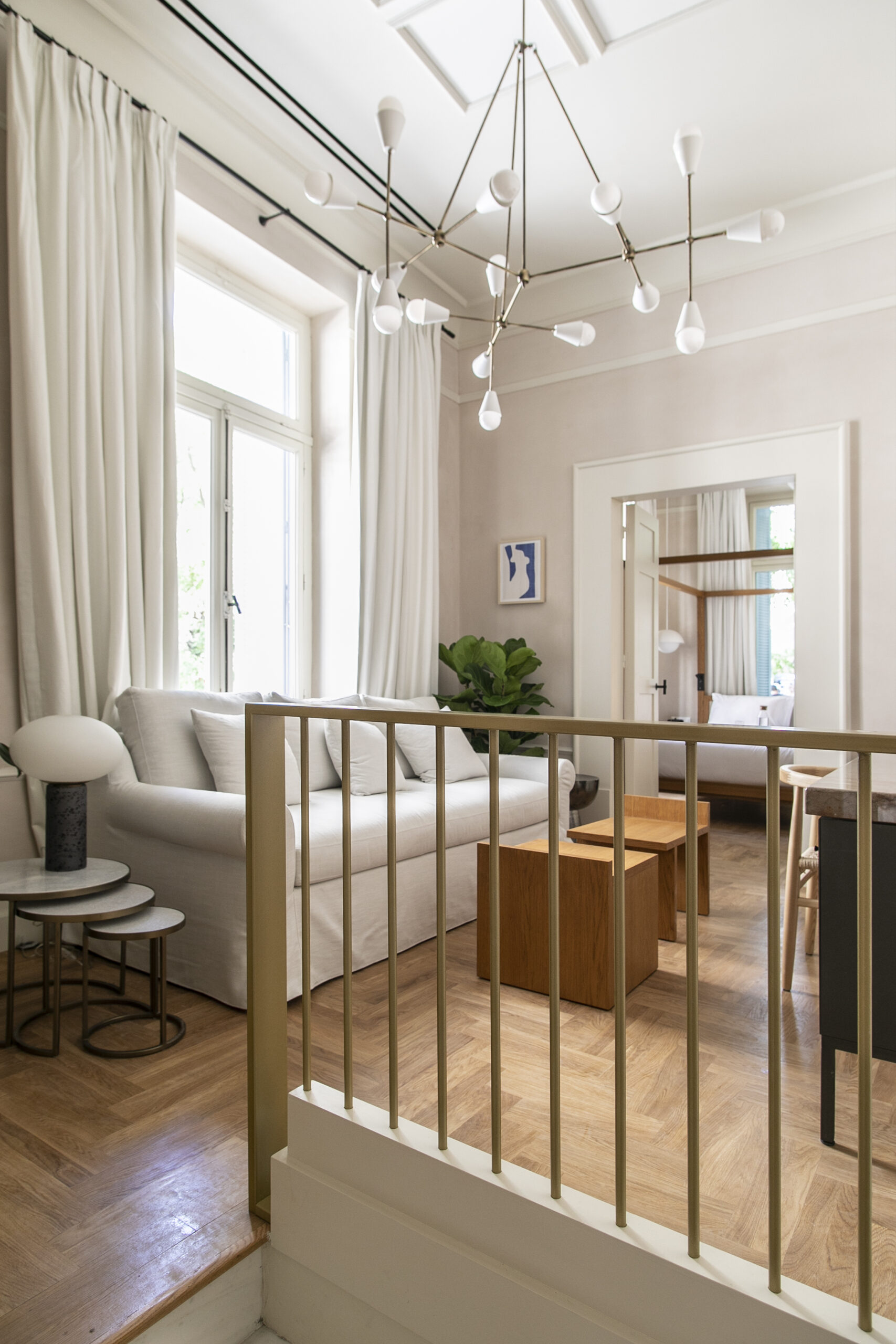Αυτό που κυριαρχεί στις 2 σουίτες και τα 4 δωμάτια του Μonsieur Didot είναι η λιτή πολυτέλεια, η έμπνευση και η μέριμνα για μία εμπειρία διαμονής με περιεχόμενο. Μυστικές πόρτες, εκπλήξεις και, πάνω απ’ όλα, μια ισορροπία που απαντάει στα «πώς» αλλά κυρίως στα «γιατί» της φιλοξενίας. Μια εμπνευσμένη και πλήρως ισορροπημένη ανακαίνιση κατάφερε να διατηρήσει και ουσιαστικά να ενισχύσει τον αστικό χαρακτήρα της κατοικίας και το άρωμα της παλιάς Αθήνας που είχε εμποτίσει κάθε γωνιά του. Ταυτόχρονα όμως ενσωμάτωσε τον πυρήνα των μοντέρνων τάσεων στη φιλοξενία και στο design. Ζωγραφισμένα ταβάνια στο χέρι, vintage μωσαϊκά, μαρμάρινα τζάκια, μία επιβλητική ξύλινα σκάλα κλείνουν το μάτι σε φυσικά υλικά στην πιο λειτουργική και μοντέρνα τους εκδοχή, σε μαλακά κρεβάτια, μοντέρνα μπάνια και φυσικά, επιλεγμένα έργα τέχνης. Το rooftop του κτηρίου αποτελεί μια πραγματική ωδή στο φως με το δωμάτιο “Τhe Ode to the light” να ξεχωρίζει για την open space και μοντέρνα διαμόρφωσή του. Οι μεγάλες τζαμαρίες με το μεταλλικό πλαίσιο και η ιδιωτική βεράντα του συνθέτουν ένα urban σκηνικό που αιχμαλωτίζει τον επισκέπτη. Η προσπάθεια της επαναδιαπραγμάτευσης των νεοκλασικών του στοιχείων αλλά και ενός γόνιμου διαλόγου με την τοπική ιστορία και την ιστορία του δρόμου στον οποίο βρίσκεται πέτυχε.