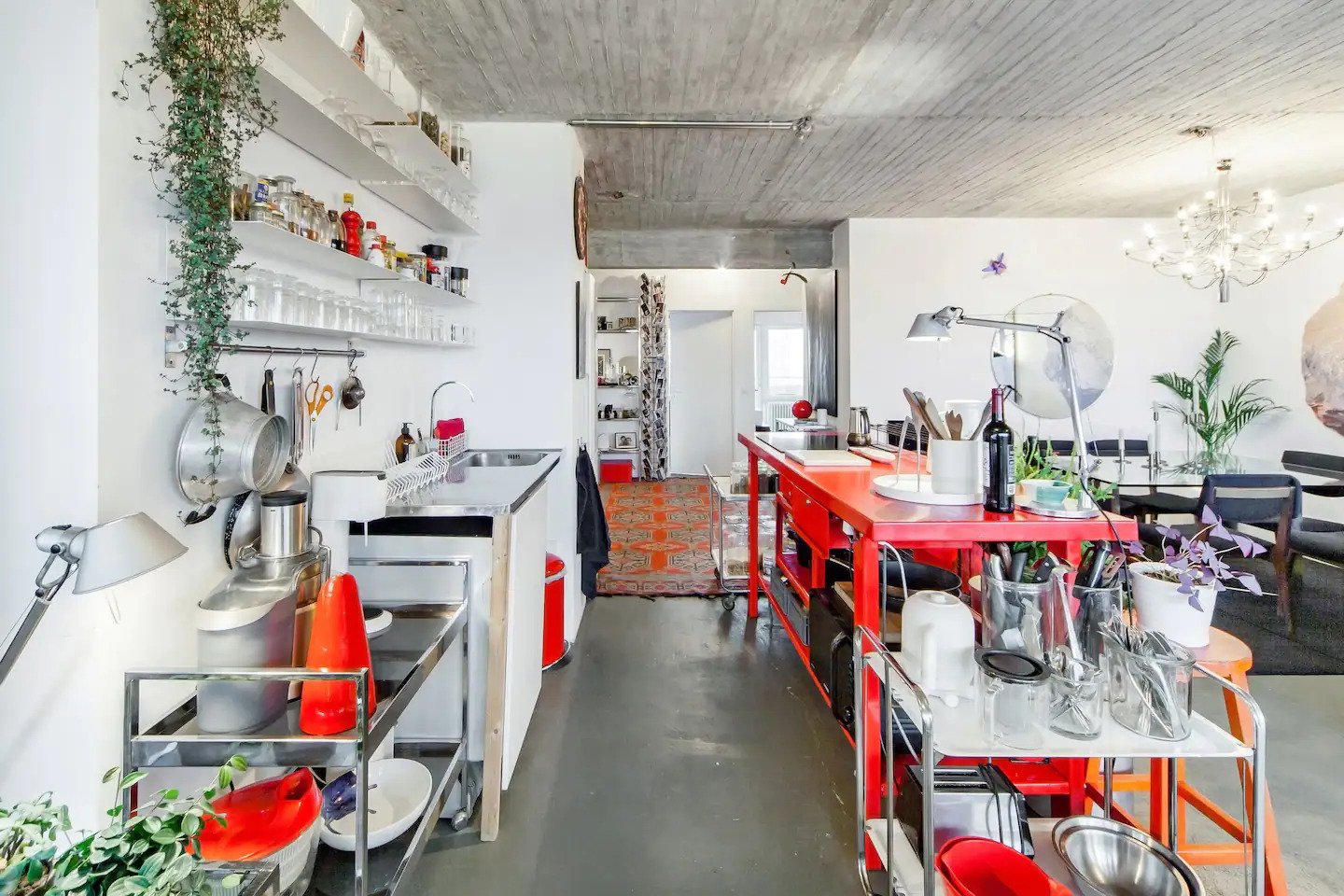 Στην είσοδο του διαμερίσματος, υπάρχει βιβλιοθήκη καθώς και ένα μικρό γραφείο με καρέκλα για όποιον θέλει να εργαστεί και να διαβάσει. Το διαμέρισμα μπορεί να φιλοξενήσει έως 4 άτομα και διαθέτει δύο κρεβατοκάμαρες. Στη μία, υπάρχει ένα queen size κρεβάτι καθώς και διακόσμηση βιομηχανικού στυλ με έπιπλα από μέταλλο ή μίμησης φθαρμένου ξύλου. Στην άλλη κρεβατοκάμαρα, κυριαρχούν οι αποχρώσεις του κόκκινου. Η κουζίνα είναι πλήρως εξοπλισμένη ενώ στην τραπεζαρία υπάρχει ένα γυάλινο τραπέζι στο οποίο μπορούν να δειπνήσουν 4 άτομα. Στο σαλόνι, υπάρχει ένας μπλε καναπές με πολλά μαξιλάρια καθώς και ένα δεύτερο γραφείο με καθρέφτη. Στο μπαλκόνι υπάρχει άνετος χώρος για να απολαύσετε τη θέα. Μπορεί να φιλοξενήσει έως 4 άτομα. Από 44 ευρώ το άτομο ανά διανυκτέρευση.