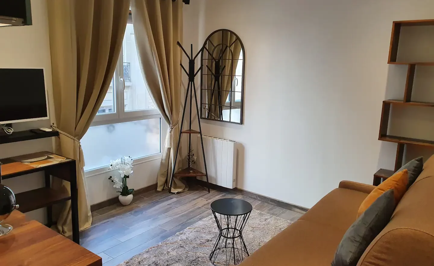 Πρόκειται για ένα μικρό διαμέρισμα 15 τετραγωνικών μέτρων αλλά είναι διαμορφωμένο με έξυπνο τρόπο έτσι ώστε να φαίνεται μεγαλύτερο. Βρίσκεται σε μια πολυσύχναστη συνοικία, με καλά εστιατόρια και μπαρ στην καρδιά του δεύτερου διαμερίσματος του Παρισιού. Όμως, στο δρόμο που βρίσκεται το κατάλυμα, η κίνηση είναι ιδιαίτερα περιορισμένη, κάτι που το καθιστά ιδανικό καταφύγιο όταν επιστρέφετε από μια μέρα εξερεύνησης στη γαλλική πρωτεύουσα.