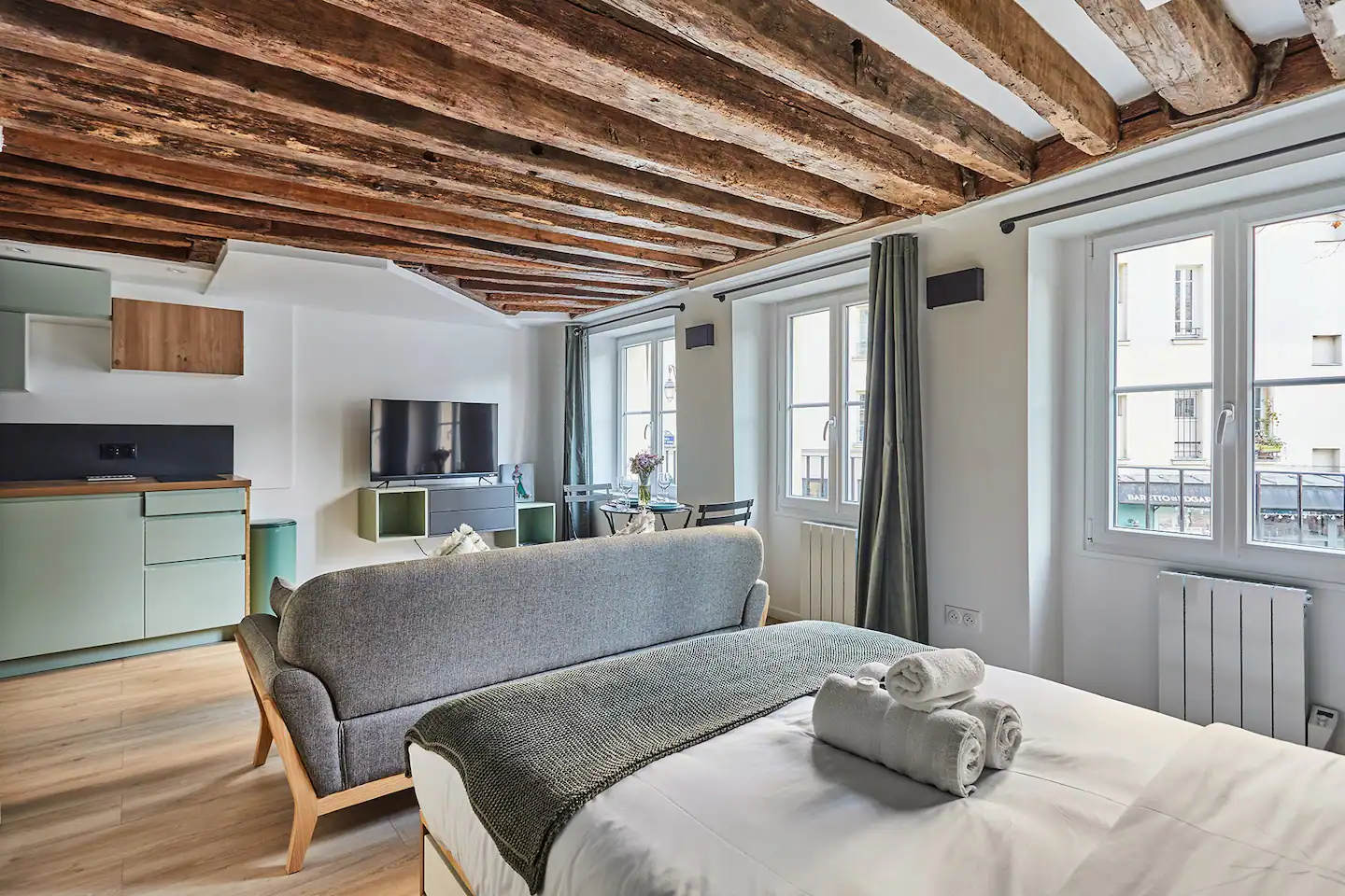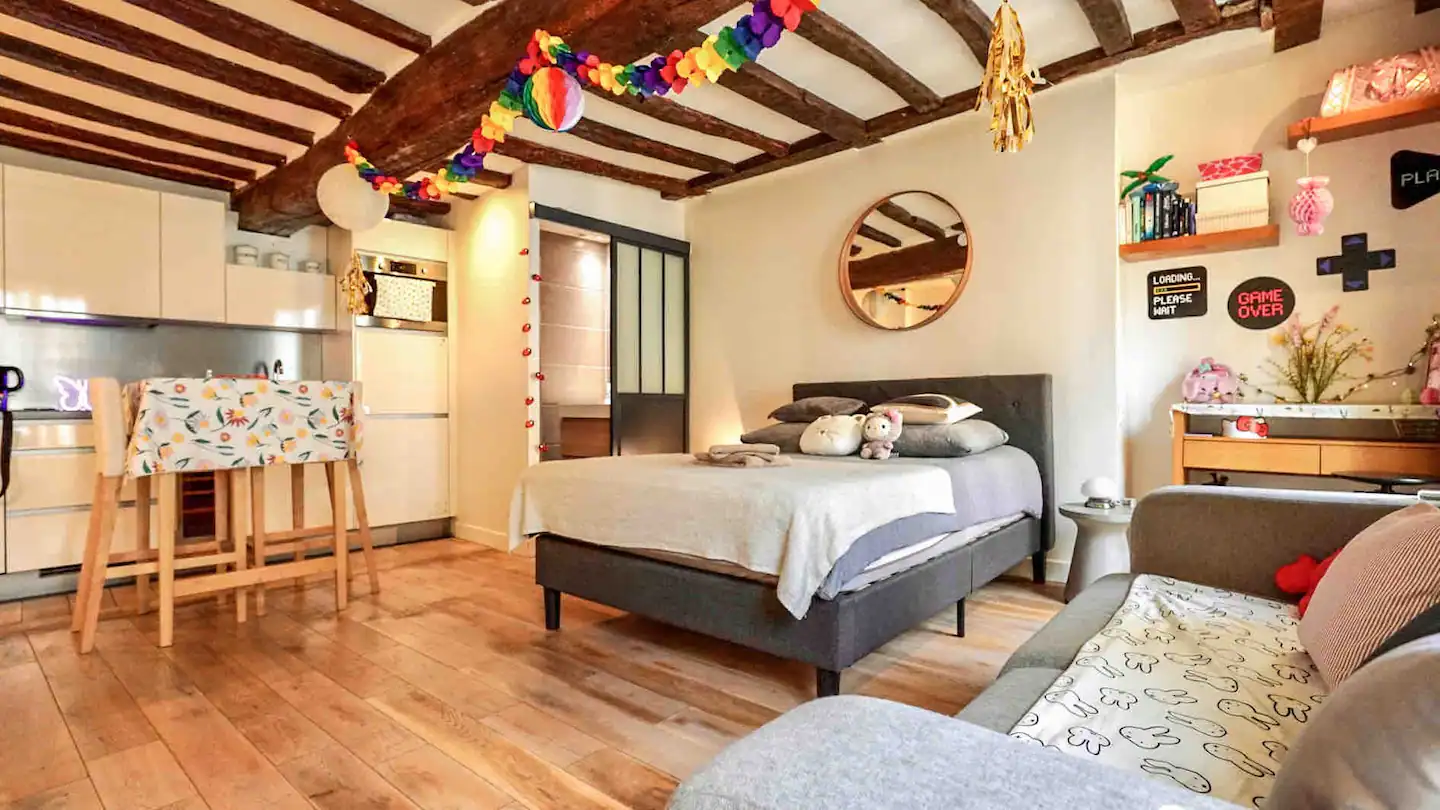Καλώς ήρθατε στο Marais του Παρισιού. Το διαμέρισμα διαθέτει απλό design και είναι καλά εξοπλισμένο. Πρόκειται για ένα μεγάλο στούντιο 30 τ.μ. που βρίσκεται σε έναν από τους πιο διάσημους δρόμους της συνοικίας. Εδώ, τα πάντα είναι πολύ κοντά, όπως το Κέντρο Ζωρζ Πομπιντού, η Παναγία των Παρισίων και το Μουσείο του Λούβρου. Την ίδια στιγμή, θα είστε κοντά σε σταθμούς του μετρό αλλά και σε μια συνοικία γεμάτη εστιατόρια, μπαρ, καφέ και καταστήματα μόδας.