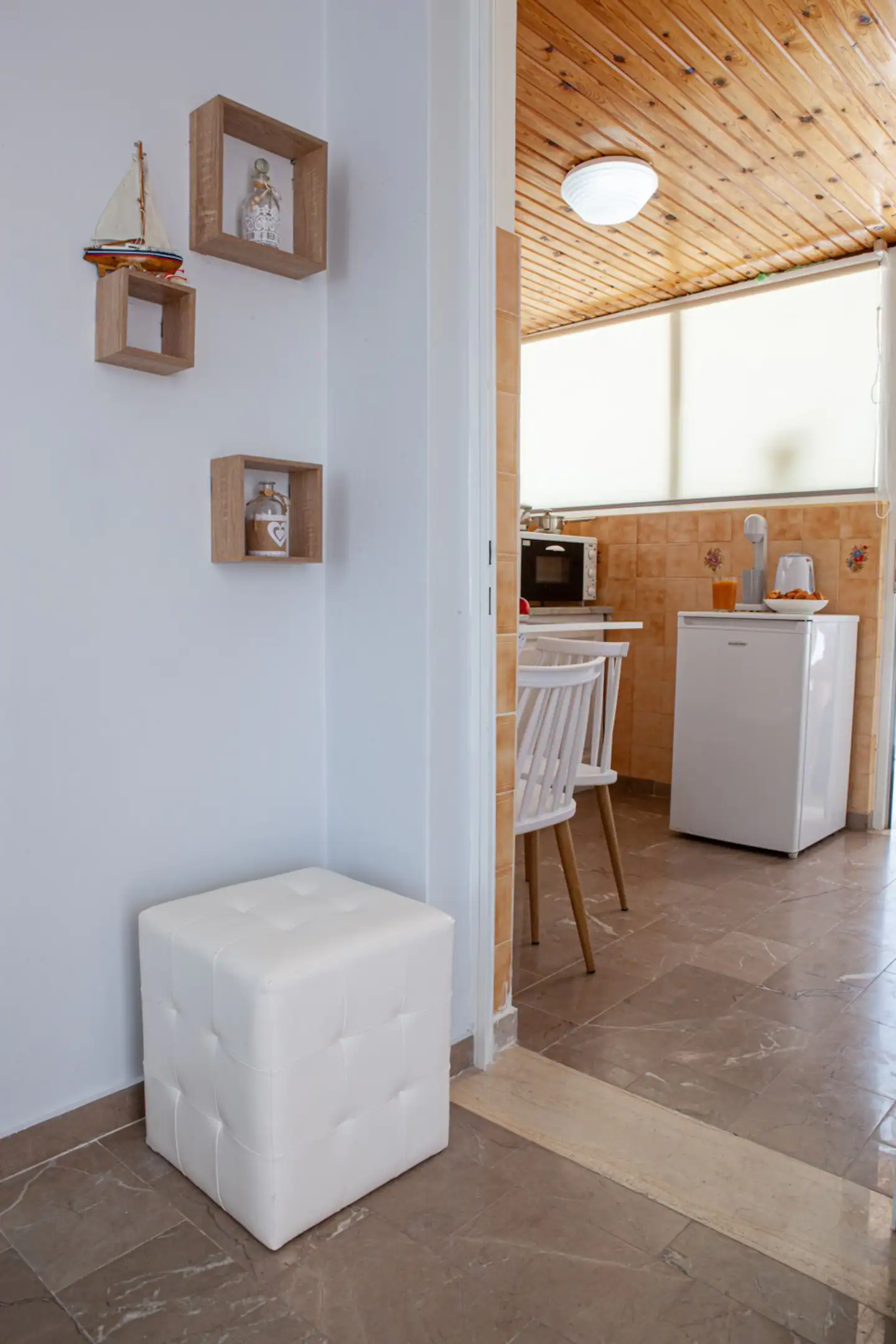 Ένα όμορφο στούντιο, στον δεύτερο όροφο ενός οικογενειακού, καλοδιατηρημένου κτηρίου μόλις 2 λεπτά με τα πόδια από την παραλία του Τολού με τα γαλήνια, πεντακάθαρα νερά. Αυτό σημαίνει ότι δεν χρειάζεστε αυτοκίνητο για τις μετακινήσεις σας.