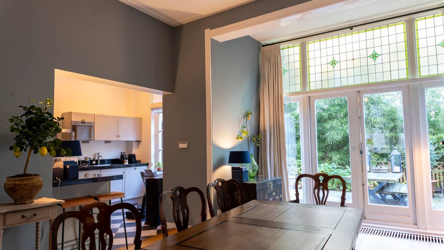 Το συγκεκριμένο άνετο οίκημα με τα ψηλά ταβάνια και τα όμορφα βιτρό είναι ένα ιδανικό κατάλυμα για όποιον θέλει να παραμείνει αρκετές μέρες στην πρωτεύουσα της Ολλανδίας. Διαθέτει, επίσης, εσωτερικό κήπο και άνετες ξύλινες ξαπλώστρες.