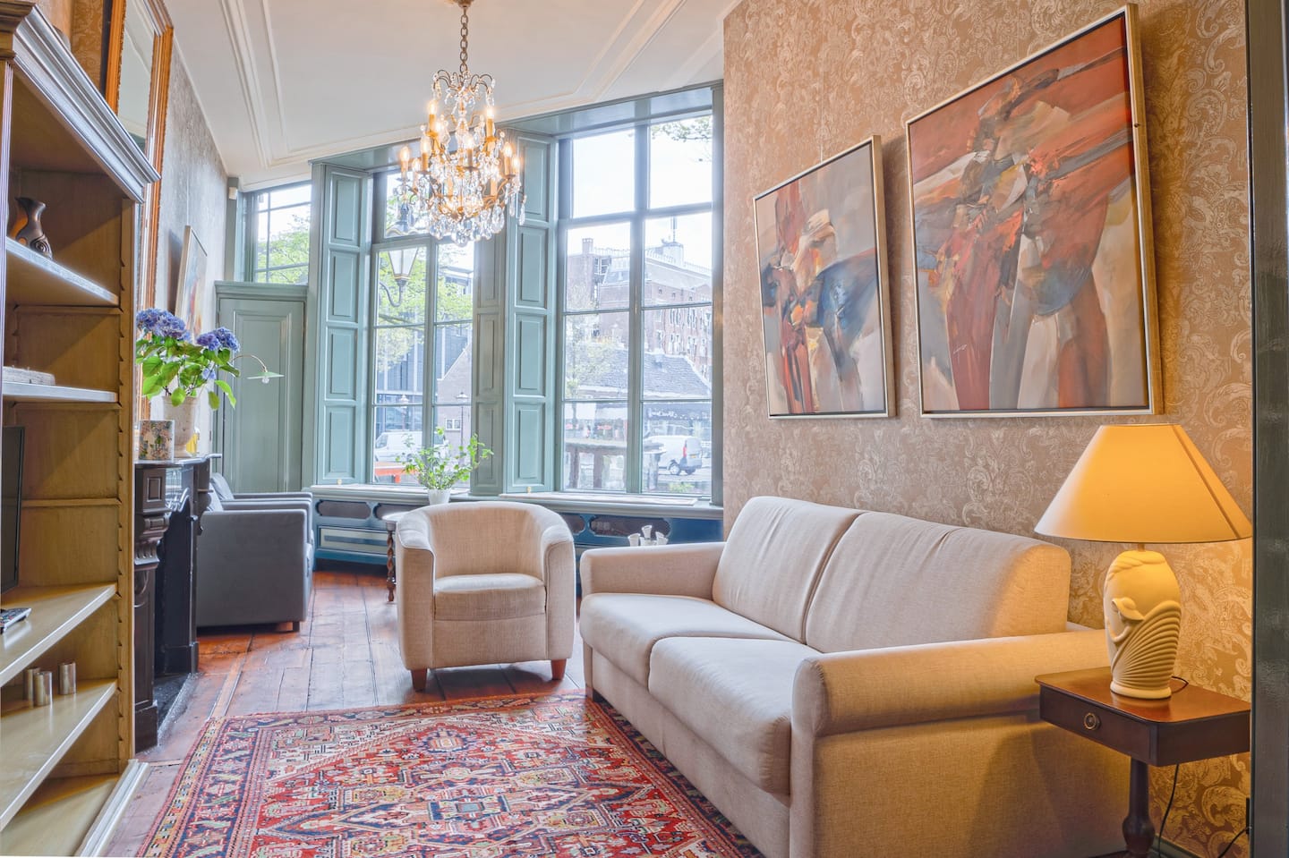 Η συνοικία των 9 Straatjes (9 Δρόμοι) είναι η καλύτερη για να κάνει κανείς αγορές στο Άμστερνταμ. Διαθέτει πλήθος από καταστήματα με vintage ρούχα, όμορφα καφέ, εξειδικευμένα καταστήματα και γκαλερί. Εδώ βρίσκεται κι αυτό όμορφο διαμέρισμα το οποίο έχει θέα σε ένα από τα κανάλια της πόλης.