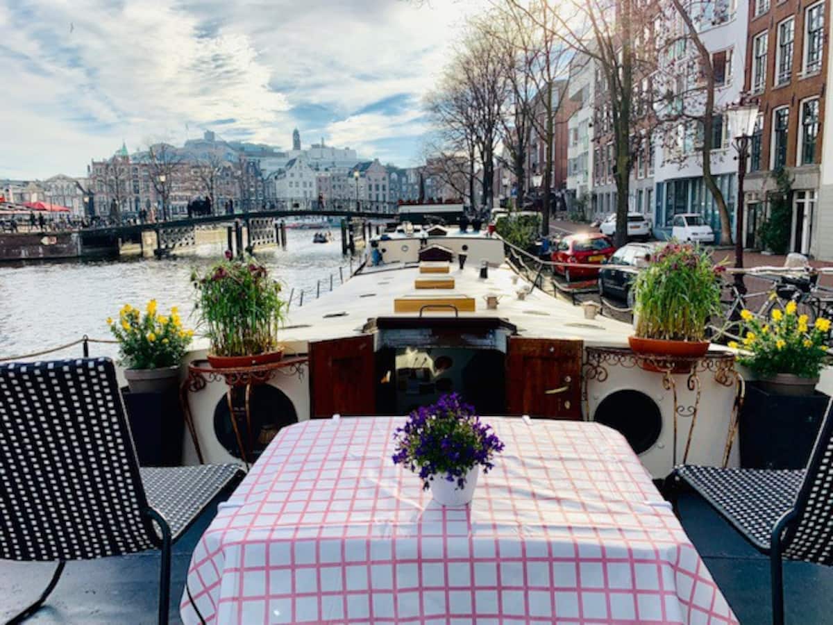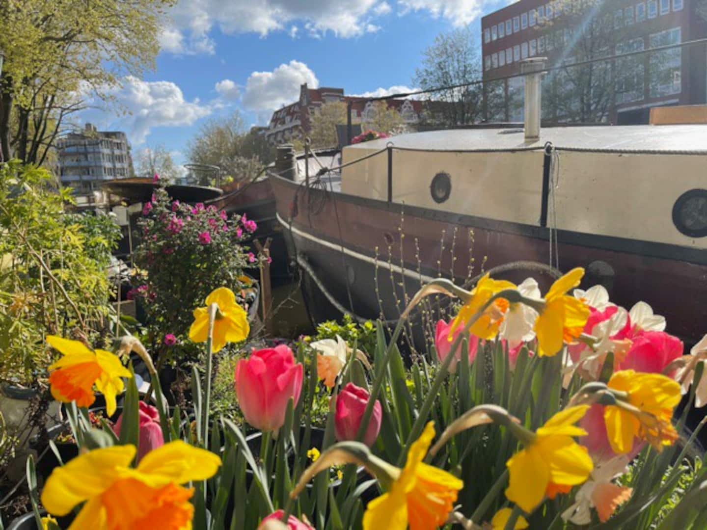 Στο κατάστρωμα αυτού του πλωτού οικήματος που μετρά 100 χρόνια, υπάρχουν γλάστρες με ανθισμένα λουλούδια. Το σκάφος που είναι αγκυροβολημένο στον ποταμό Άμστελ έχει θέα στην πλατεία Waterlooplein και στην πλατεία Rembrandtplein.