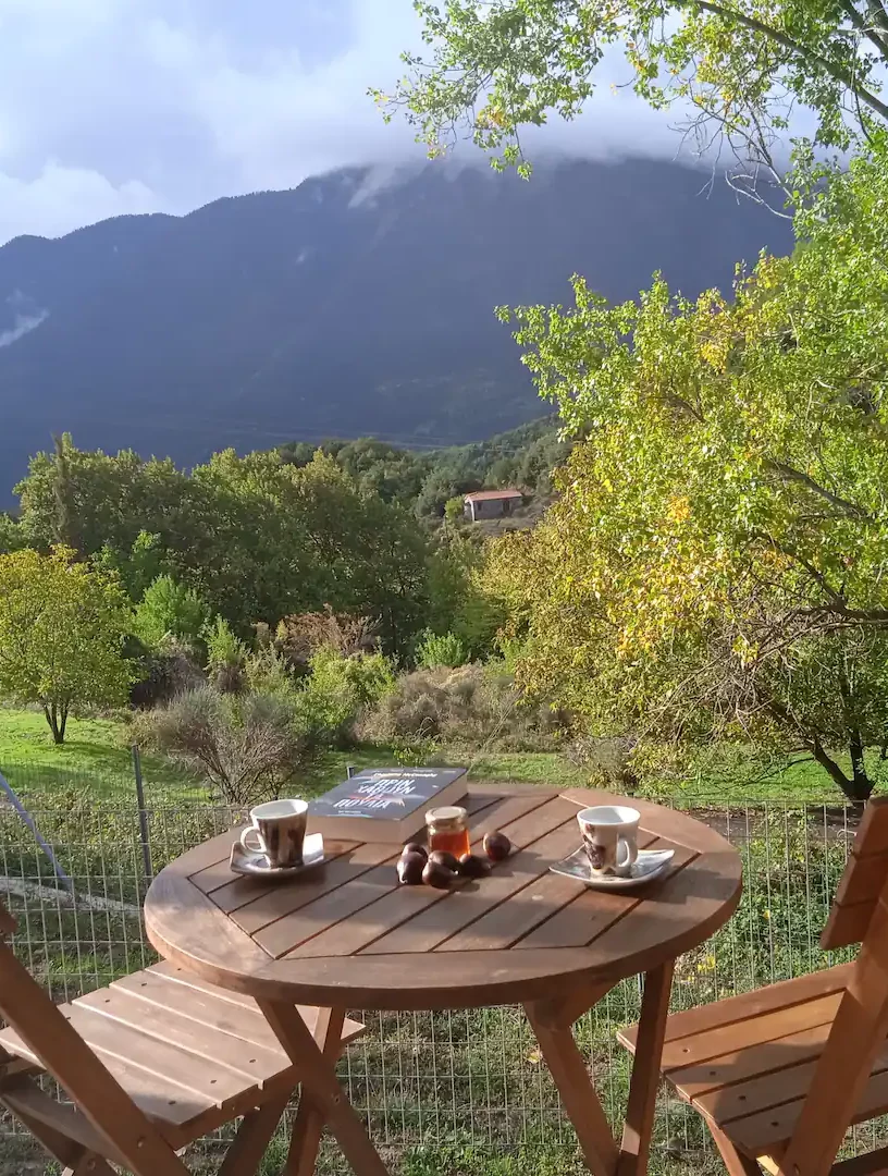 Ένας ζεστός χώρος για χαλάρωση με πανέμορφη θέα και ένα χωριό με μικρές διαδρομές από τον καταρράκτη στο Κεφαλόβρυσο ή μια πηγή.