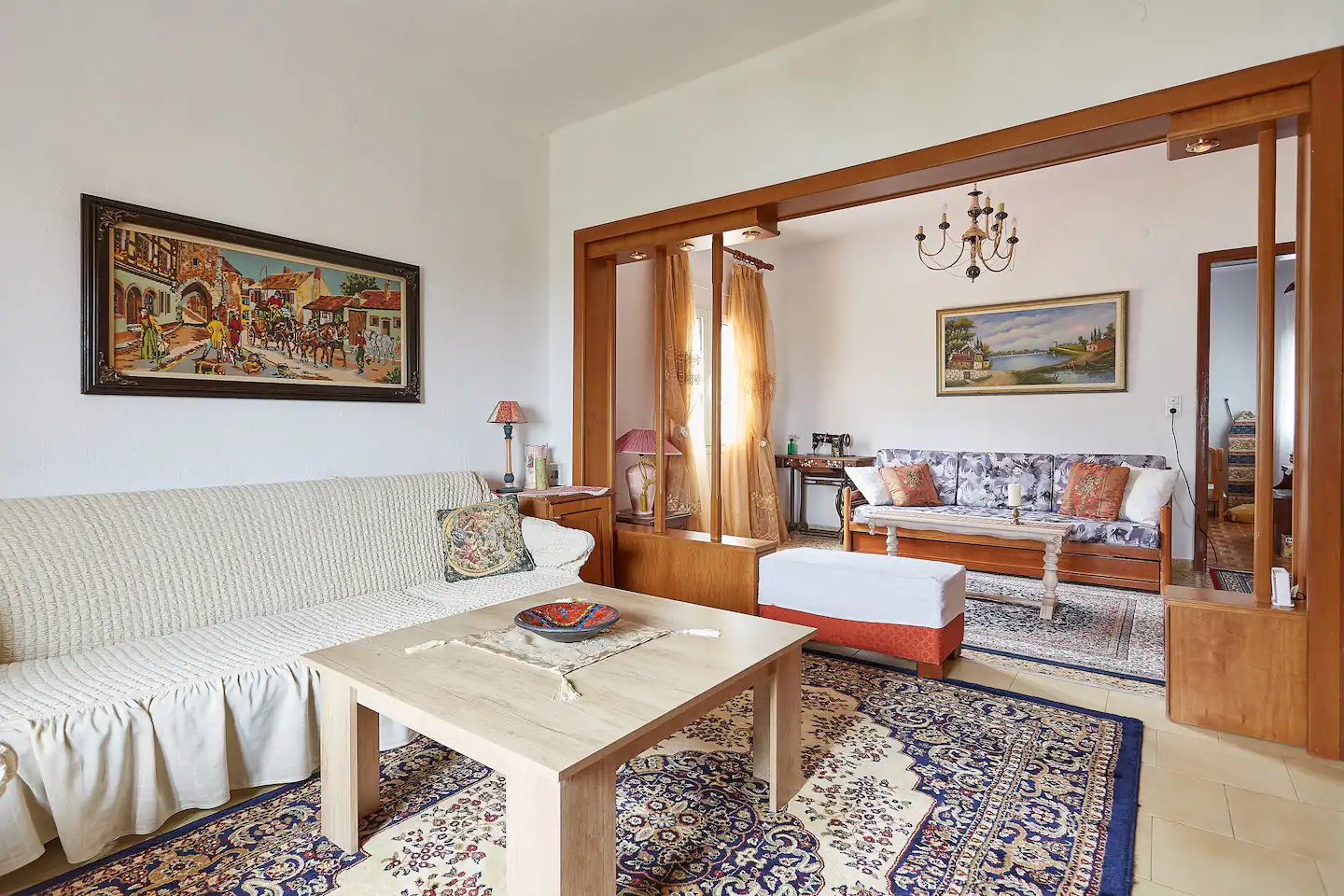 Δεν θα μπορούσαμε να συμφωνήσουμε περισσότερο καθώς ταπετσαρίες, κουρτίνες, χαλιά, καναπέδες και υπόλοιπη επίπλωση και διακόσμηση (από ποτηράκια, σεμεδάκια έως μια ραπτομηχανή) πράγματι παραπέμπουν σε «γιαγιαδίστικη» ατμόσφαιρα.