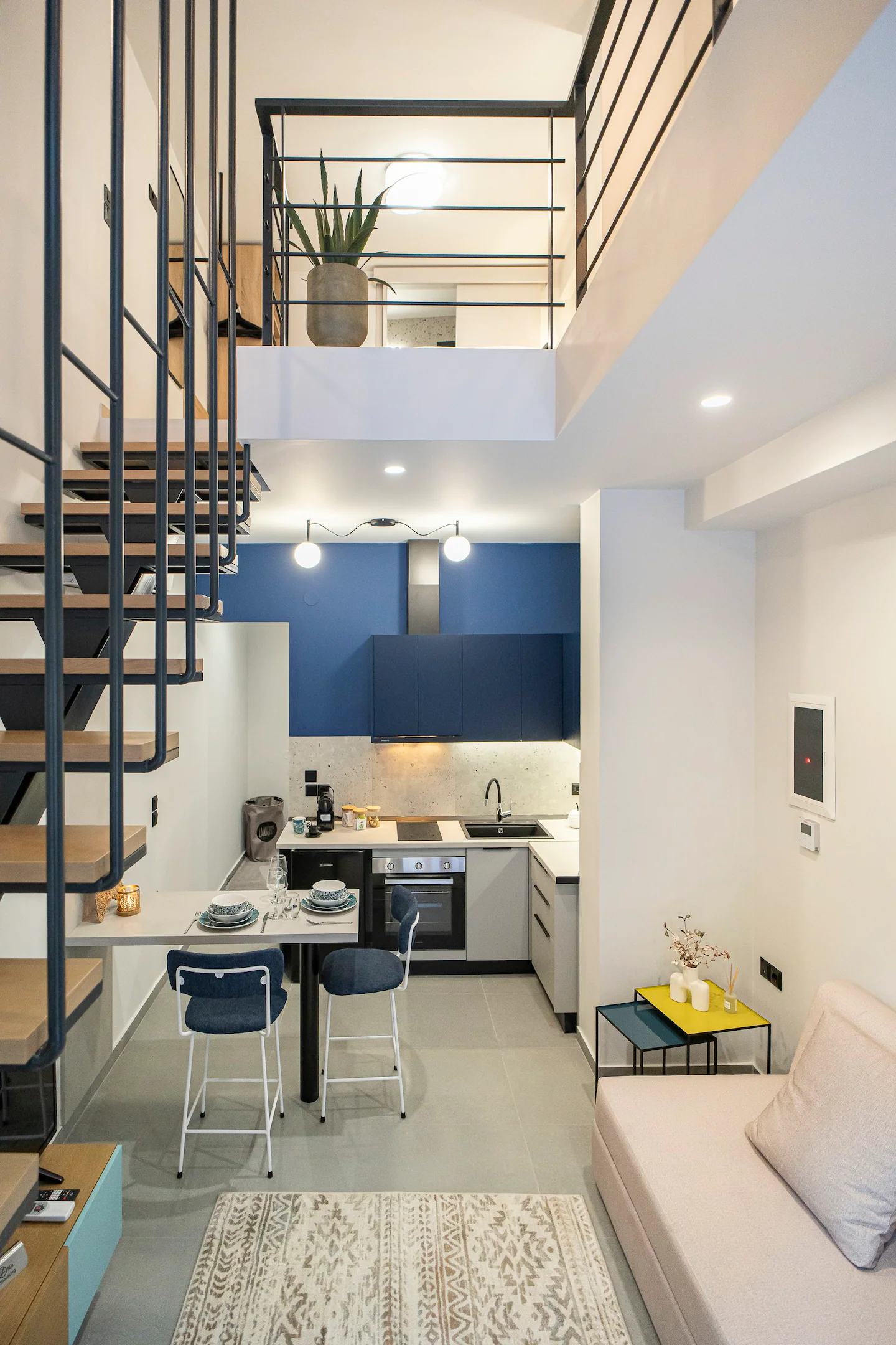 Ένα ανακαινισμένο Studio 28 τετραγωνικών ειδικά σχεδιασμένο για μια πιο urban διαμονή στην πόλη των Τρικάλων. Το κατάλυμα διαθέτει ένα queen -size κρεβάτι, καθώς και μια πλήρως εξοπλισμένη κουζίνα που συνδέεται με το καθιστικό σε έναν ενιαίο αεράτο και πρακτικό χώρο. Φυσικά, ούτε λόγος για το σκανδιναβικής αισθητικής μπάνιο που σίγουρα θα σας προσφέρει στιγμές χαλάρωσης, ευεξίας και αναζωογόνησης.