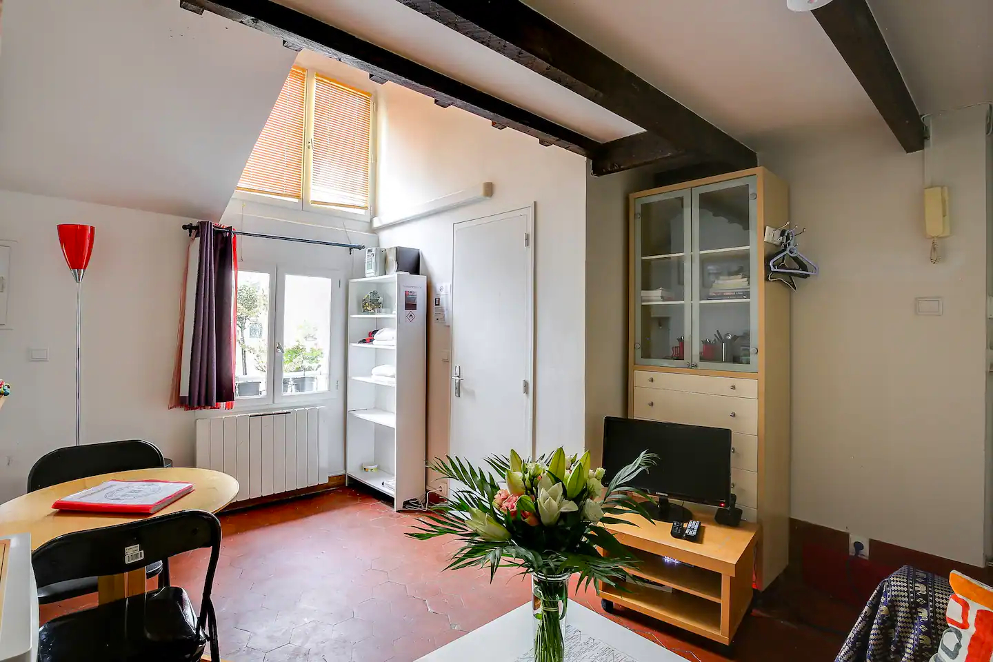 Βρίσκεται στον 3ο όροφο ενός πενταώροφου κτιρίου χωρίς ανελκυστήρα. Αυτό το στούντιο των 18 τετραγωνικών μέτρων έχει θέα σε μια πολύ ήσυχη αυλή. Θα είστε σε θέση να ζήσετε πλήρως την ποικιλομορφία της πολιτιστικής ζωής του Παρισιού και ιδιαίτερα την ιστορική συνοικία Marais. Η σκάλα του κτιρίου για την πρόσβαση στο διαμέρισμα είναι στενή -αν έχετε μεγάλες βαλίτσες, σας συμβουλεύουμε να μην κάνετε κράτηση σε αυτό το κατάλυμα, επειδή δεν υπάρχει ανελκυστήρας.