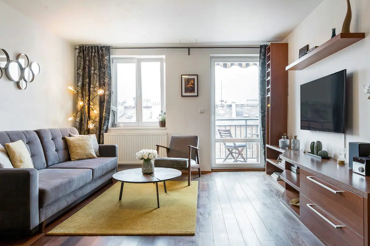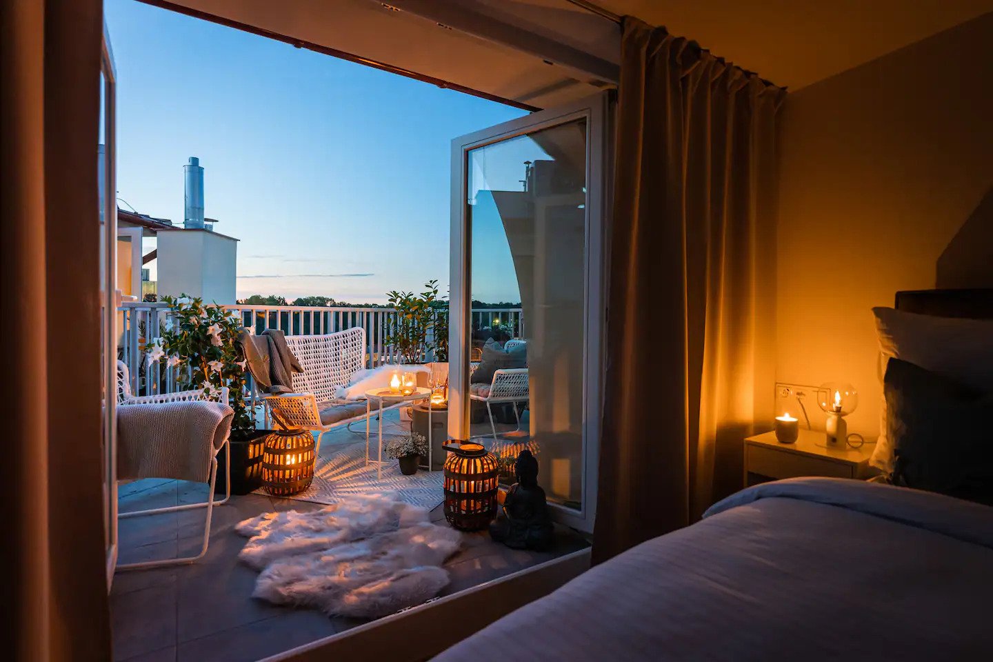 Αναζητάτε ένα σπίτι με χαλαρωτική ατμόσφαιρα για δύο στην καρδιά της Πράγας; Αυτό το εκπληκτικό Airbnb θα καταφέρει να σας αποσυμπιέσει από το στρες από τα πρώτα λεπτά της διαμονής σας σε αυτό. Η βεράντα του έχει εντυπωσιακή θέα στην πόλη και η ρομαντική ατμόσφαιρα ενισχύεται από την επίπλωση. Σημαντικό να ειπωθεί ότι το κατάλυμα βρίσκεται σε ένα νεόδμητο κτήριο, το οποίο χτίστηκε το 2022, επομένως ο εξοπλισμός του είναι καινούργιος και άριστης ποιότητας.
