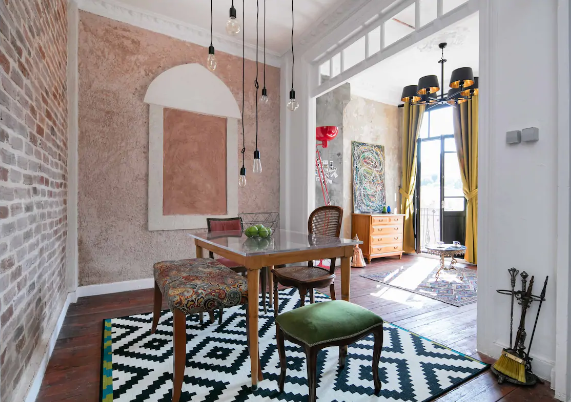 Το μπαλκόνι προσφέρει θέα στο κέντρο της πόλης ενώ την τραπεζαρία κοσμούν μοντέρνα φωτιστικά. Αξίζει να σημειωθεί ότι τα τέσσερα άτομα που μπορούν να δειπνήσουν, θα κάθονται σε καρέκλες αντίκες. Το διαμέρισμα βρίσκεται σε έναν ιδιαίτερα ζωντανό δρόμο ανάμεσα σε υπέροχα café, γκαλερί και τοπικά καταστήματα ενώ είναι ιδιαίτερα κοντά και στα περισσότερα ενδιαφέροντα σημεία της Κωνσταντινούπολης.