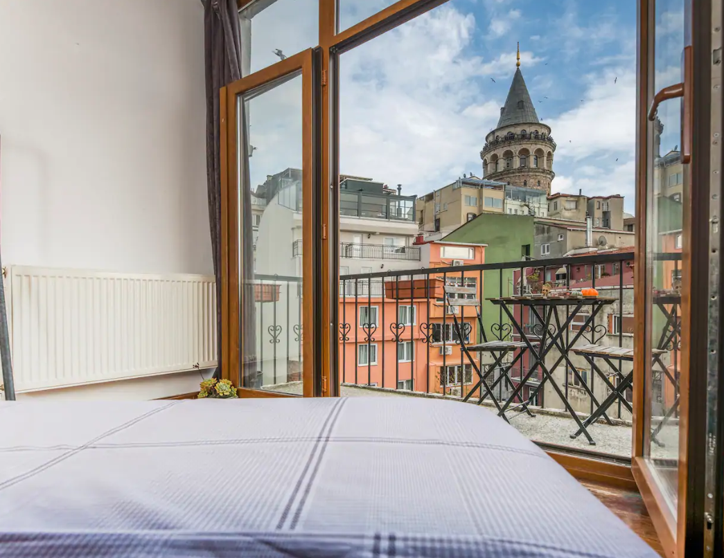 Το συγκεκριμένο κατάλυμα είναι ιδανικό για μικρές παρέες. Μπορεί να φιλοξενήσει έως 4 άτομα καθώς διαθέτει δύο διπλά κρεβάτια. Υπάρχουν μεγάλα παράθυρα που προσφέρουν εκπληκτική θέα στον Πύργο Γαλατά ενώ οι μεγάλες μπαλκονόπορτες στη μεγάλη κρεβατοκάμαρα προσφέρουν πρόσβαση σε μία ιδιωτική βεράντα όπου μπορείτε να χαλαρώσετε έχοντας σαν θέα την Αγιά Σοφιά, το Μπλε Τζαμί και τον Κεράτιο Κόλπο. Το διαμέρισμα διαθέτει κεντρική θέρμανση, πλυντήριο ρούχων και πλυντήριο πιάτων.