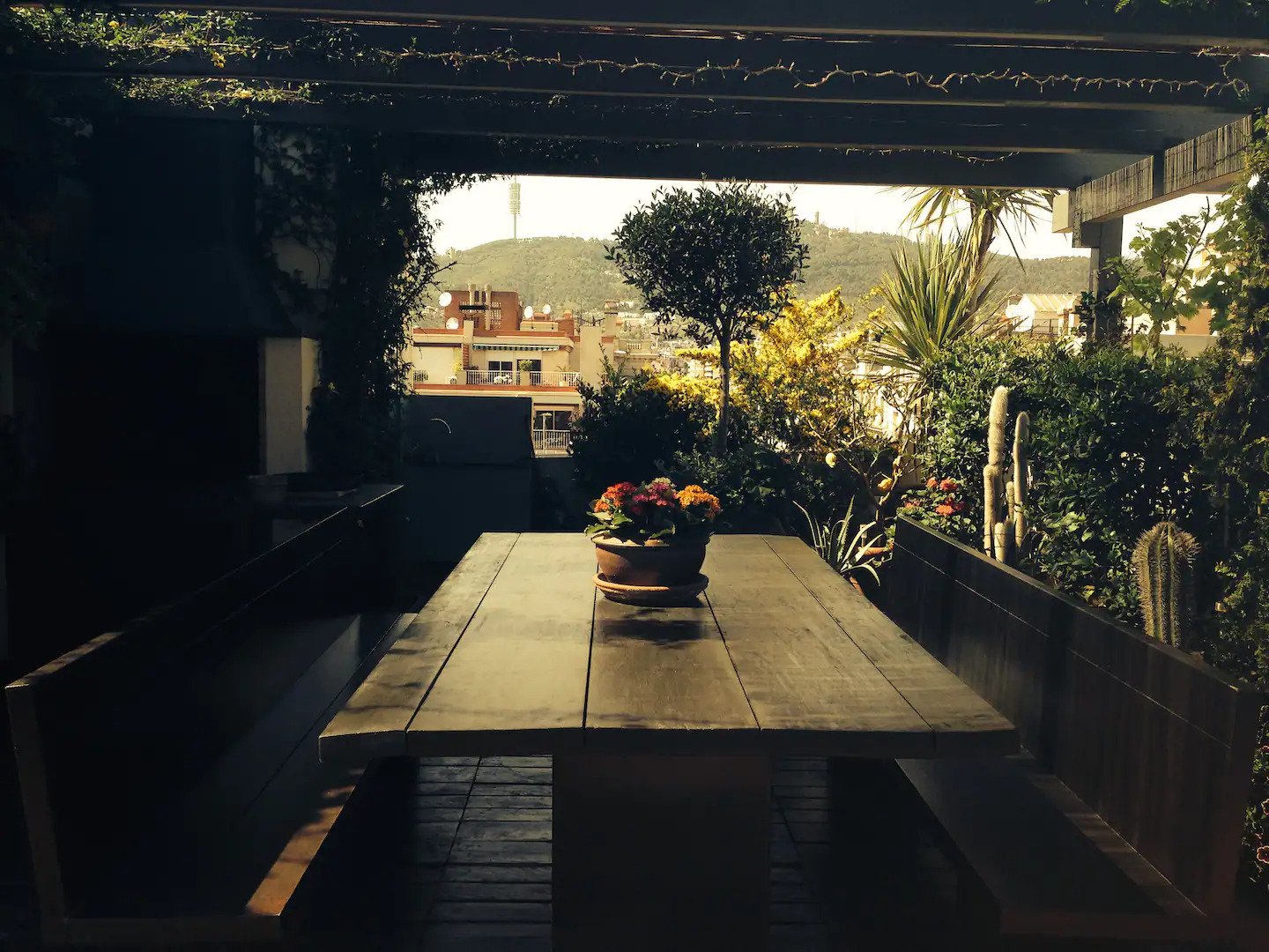 Το πραγματικό πετράδι του στέμματος σε αυτό το κατάλυμα είναι η βεράντα του. Υπάρχουν τρεις χώροι εκεί. Μία τραπεζαρία με ενσωματωμένο μπάρμπεκιου κάτω από μία πέργκολα. Ένας μεγάλος καναπές ιδανικός για να περάσετε ώρες χαλάρωσης. Κυρίως όμως υπάρχει μια σκάλα που δίνει πρόσβαση σε μία «άνω βεράντα». Εκεί θα έχετε θέα 360 μοιρών, έναν από τους πιο όμορφους τρόπους για να θαυμάσετε τη Βαρκελώνη. Μπορεί να φιλοξενήσει έως 2 άτομα. Από 82 ευρώ το άτομο ανά διανυκτέρευση