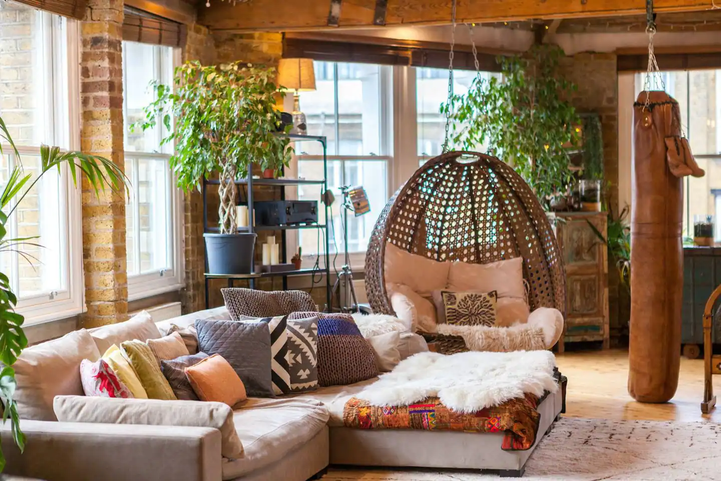 Μια εξίσου πολυτελής αλλά «εναλλακτική» επιλογή είναι αυτό το μικρό κομμάτι παραδείσου σε αυτό το εκπληκτικό διαμέρισμα στην καρδιά του Shoreditch. Με τα εκτεθειμένα δοκάρια, τους τοίχους από τούβλα, μια κούνια και τα πλούσια φυτά του μοιάζει λίγο με παραθαλάσσια «καλύβα» και λίγο με μποέμ φωλιά, σίγουρα είναι ένα ιδιαίτερο κατάλυμα.,