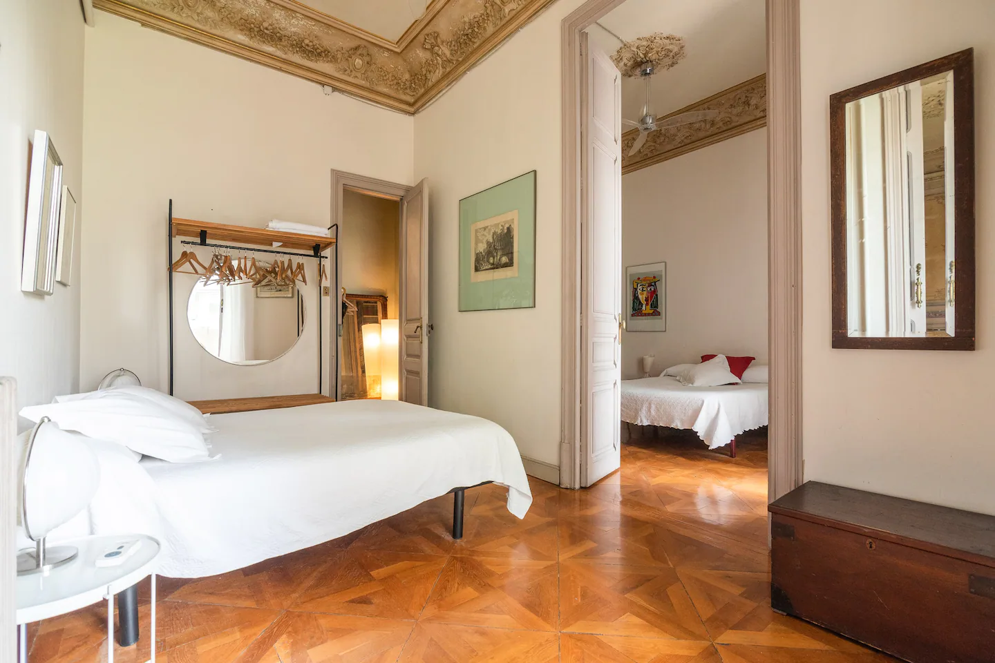 Στη διακόσμηση κυριαρχούν οι κρυστάλλινοι πολυέλαιοι, όμορφες κορνίζες καθώς και ενδιαφέρουσες μοντέρνες πινελιές. Το κατάλυμα μπορεί να φιλοξενήσει έως 4 άτομα και αποτελεί μία εξαιρετική βάση διαμονής καθώς βρίσκεται σε πολύ ευνοϊκή τοποθεσία. Η γειτονιά του είναι πολύ ασφαλής, περπατιέται εύκολα και με εύκολη πρόσβαση τόσο στην παραλία όσο και στο κέντρο της πόλης. Και τα δύο απέχουν λιγότερο από μισή ώρα με τα πόδια.