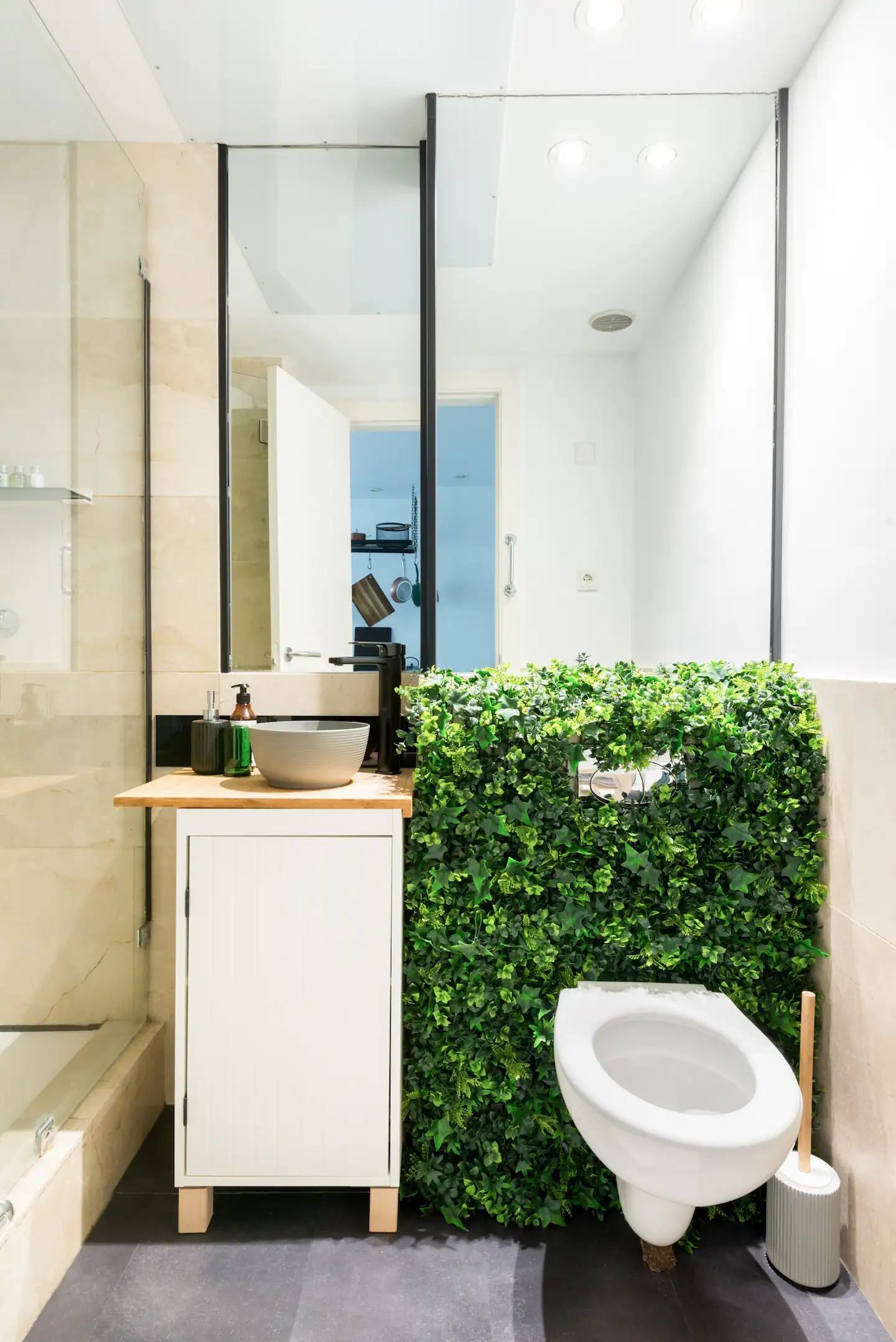 Ένα τεράστιο παράθυρο κατά μήκος ολόκληρου του διαμερίσματος έχει θέα σε έναν όμορφο ιδιωτικό κήπο. Το κατάλυμα αποτελείται από ένα υπνοδωμάτιο με ένα διπλό κρεβάτι, ένα σαλόνι με έναν μονό καναπέ-κρεβάτι, κουζίνα και μπάνιο. Διαθέτει WiFi και είναι πλήρως εξοπλισμένο, με πλυντήριο ρούχων, τηλεόραση, κλιματισμό και καφετιέρα Nespresso -όλα έτοιμα για την άνεση και την απόλαυσή σας.