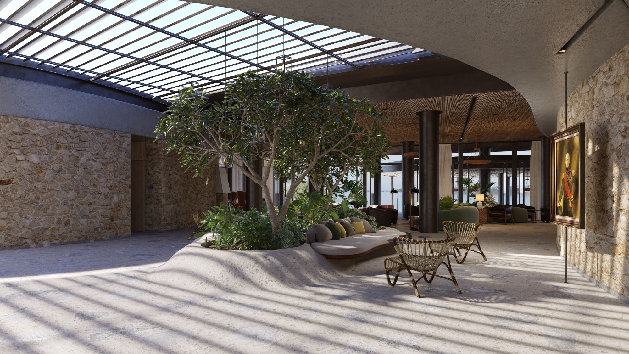 Το resort αγκαλιάζει τη φυσική ομορφιά της Μεσσηνίας με νότες από ενδημικά μεσογειακά φυτά, γήινες αποχρώσεις και κομψές πινελιές χρωμάτων. Η διακόσμηση υμνεί την αρχιτεκτονική και του 19ου αιώνα αντικατοπτρίζοντας τα ιστορικά μνημεία της περιοχής, που δίνουν την έμπνευση για μοτίβα και ξυλόγλυπτα. Οι φυσικές αποχρώσεις της τερακότας δημιουργούν ένα φιλόξενο περιβάλλον με custom-made έπιπλα, παράθυρα που φτάνουν μέχρι την οροφή και state-of-the-art τεχνολογία ψυχαγωγίας. Τα χαλιά σε σουίτες και βίλες είναι επίσης εμπνευσμένα από την ύφανση των παραδοσιακών ελληνικών ενδυμασιών.