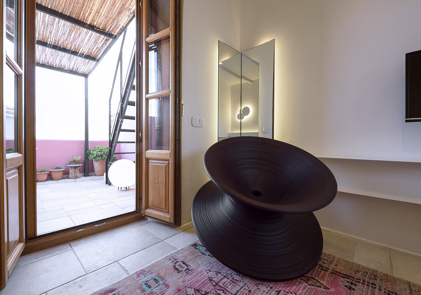 Κι όμως, σε αυτόν τον χώρο κατάφεραν να αναδείξουν τη σημασία του φυσικού φωτός μέσα στην καθημερινότητα των ανθρώπων που το κατοικούν. Κάτι που δεν ήταν εύκολο να δημιουργηθεί σε ένα τόσο στενό οικόπεδο. Όμως η αρχιτεκτονική μελέτη κατάφερε να εξισορροπήσει τις νέες παραμέτρους του έργου: άπλετο φυσικό φως, λειτουργικότητα, ευρυχωρία και ιδιωτικότητα.
