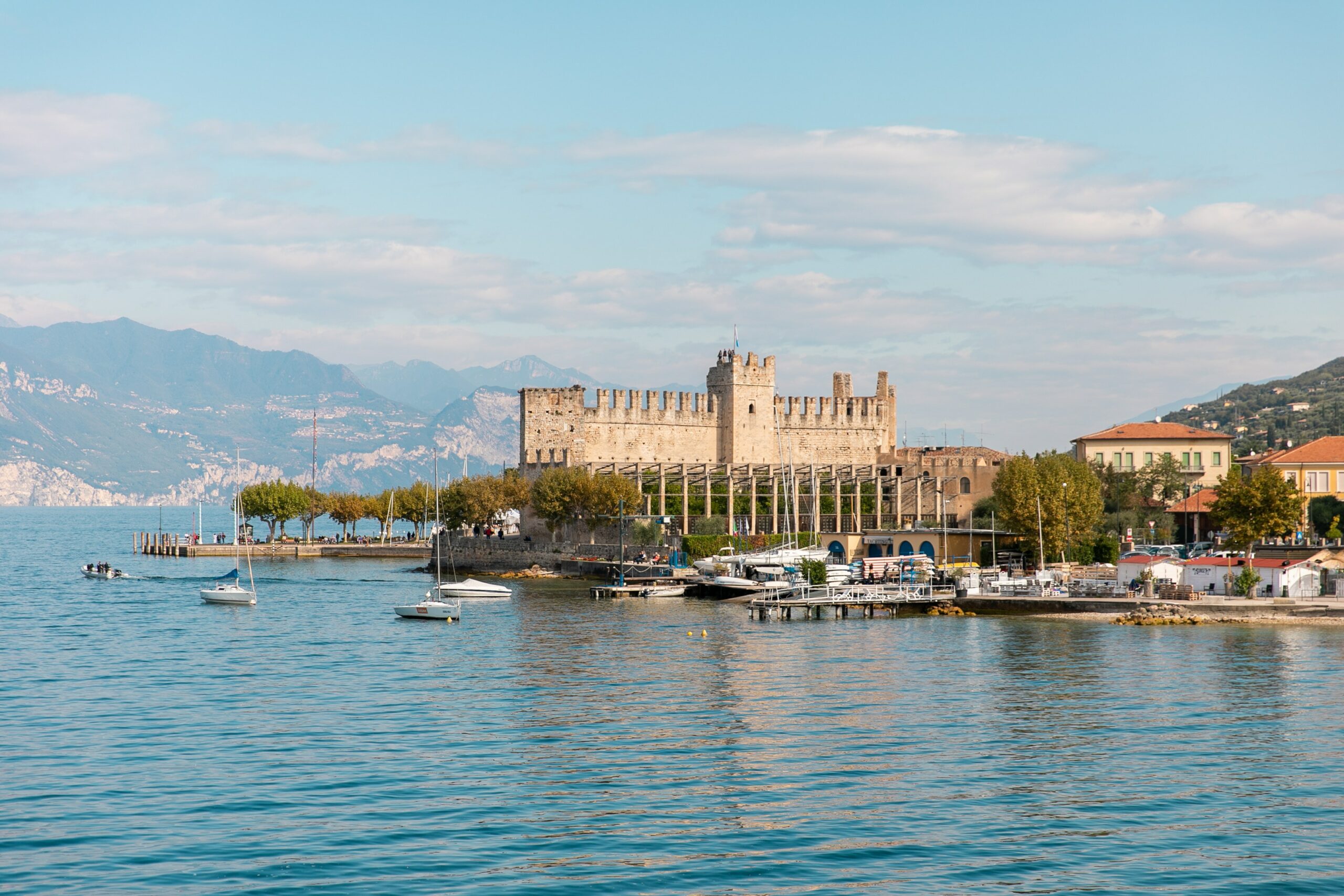 Κινούμενοι νοτιότερα, γραφικές πόλεις στις όχθες της λίμνης προσφέρουν μια εναλλαγή σκηνικών από τη Ρωμαϊκή Εποχή, όπως η Βίλα Ντεζεντάνο με τα εντυπωσιακά πολύχρωμα μωσαϊκά ή η θεωρούμενη κατοικία του αρχαίου ποιητή Κάτουλλου στη Σιρμιόνε, ως τη μεσαιωνική εποχή και τα υπέροχα κάστρα που διασώζονται από τότε, όπως αυτό του Τόρρι ντελ Μπενάκο ή της Σιρμιόνε και πάλι, με την τάφρο και την κρεμαστή του γέφυρα να αποτελεί το θεαματικό, μοναδικό τρόπο εισόδου στην πόλη μέχρι τις μέρες μας. Εκ των ων ουκ άνευ και η μίνι εκδρομή με πλοιάριο στο μεγαλύτερο νησί της λίμνης, Isola di Garda – γνωστό και ως Isola Borghese – με την περίφημη γοτθική βίλα και τους πλούσιους κήπου της, στο οποίο γίνονται δίωρες ξεναγήσεις δυο φορές την εβδομάδα.