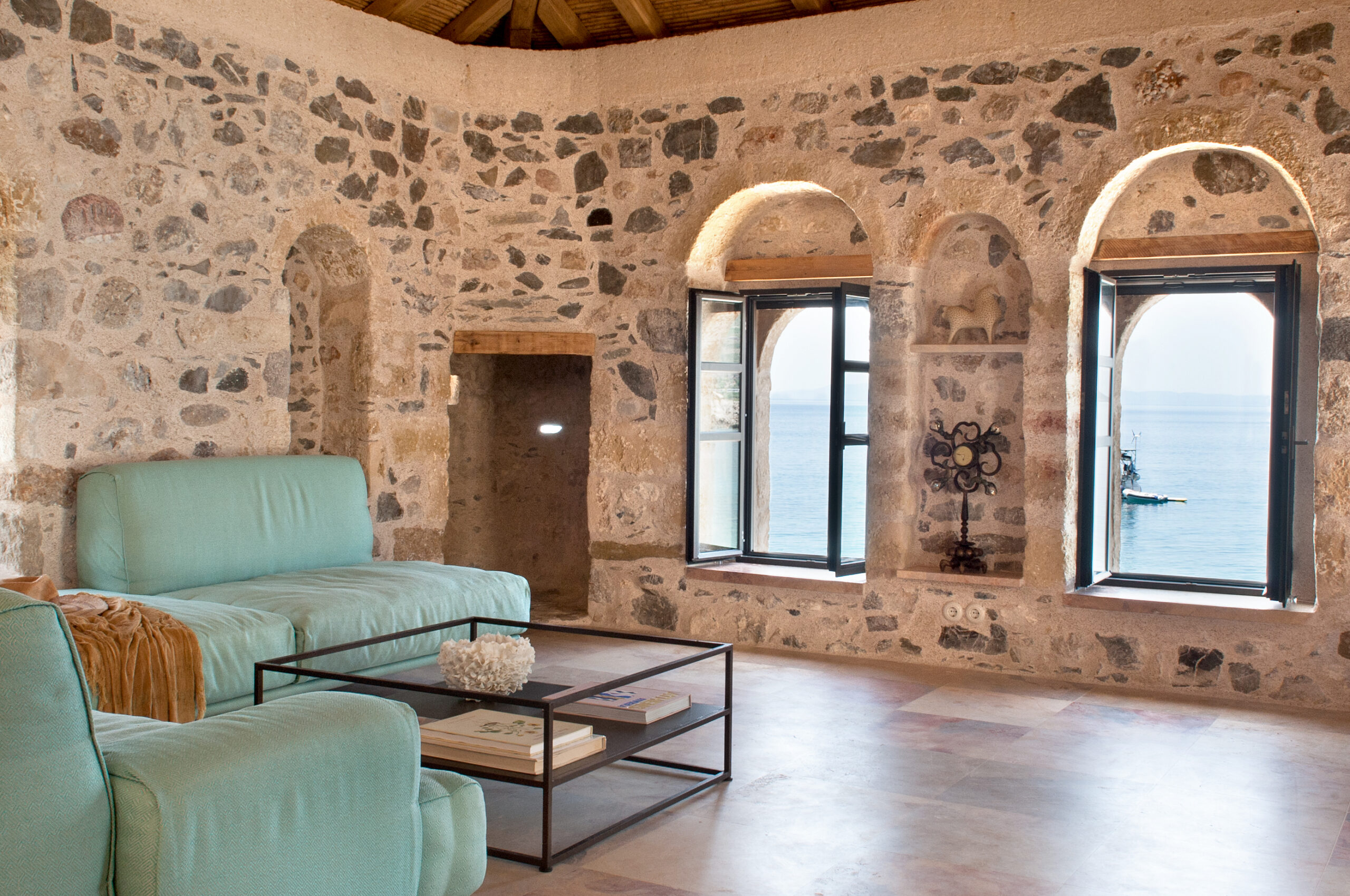 Αποκάλυψαν την εκπληκτική λιθοδομή του 18ου αιώνα, μετατρέποντας τα κοντόχοντρα ογκώδη κτίρια σε ψηλά λεπτά με προσεκτική εκσκαφή από το περιβάλλον σκυρόδεμα. Στη συνέχεια αποκατέστησαν το κέλυφος, σύμφωνα με την αρχική οχυρωμένη αρχιτεκτονική της Μάνης. Το ίδιο έκαναν επίσης με τις στέγες, ενώ μετέτρεψαν σε παράθυρα τις σκαλότρυπες και τις πολεμότρυπες στους κάτω ορόφους για να δώσουν αέρα και φως και να γίνει ο χώρος κατοικήσιμος.