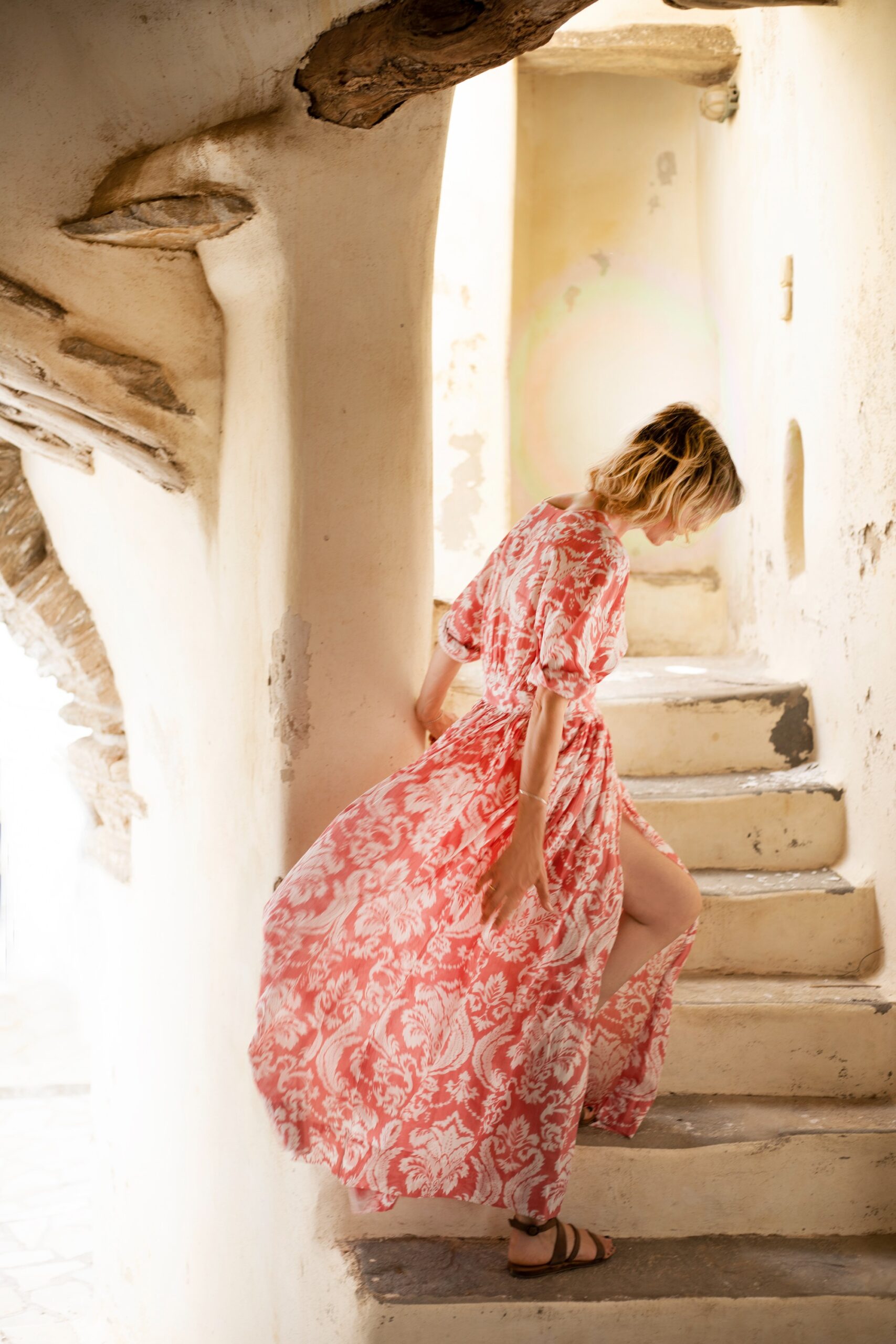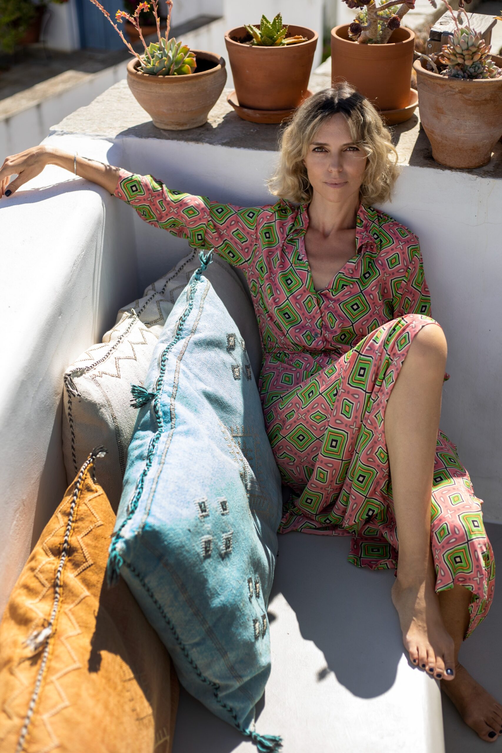 Στην πολύχρωμη Katsika (η οποία έχει κατακλύσει -και δικαίως- το Instagram) μπορεί κάποιος να βρει μοναδικά κομμάτια από διάφορες χώρες. «Λόγω της ουκρανικής μου καταγωγής, έφερα από τη Χώρα καφτάνια και μπλούζες, που συνδυάζουν ένα κομμάτι της παράδοσης με σύγχρονες τεχνικές» μου εξηγεί και αντιλαμβάνομαι ότι μιλάει για τα εκπληκτικά κεντημένα καφτάνια τα οποία φορά στη φωτογράφιση με την Ρούλα Ρέβη..