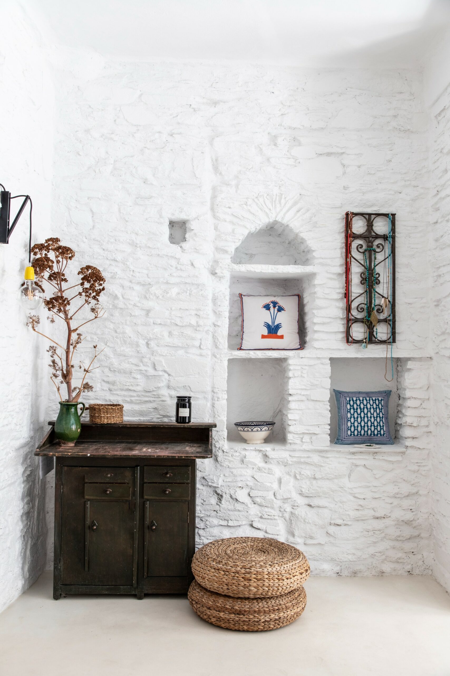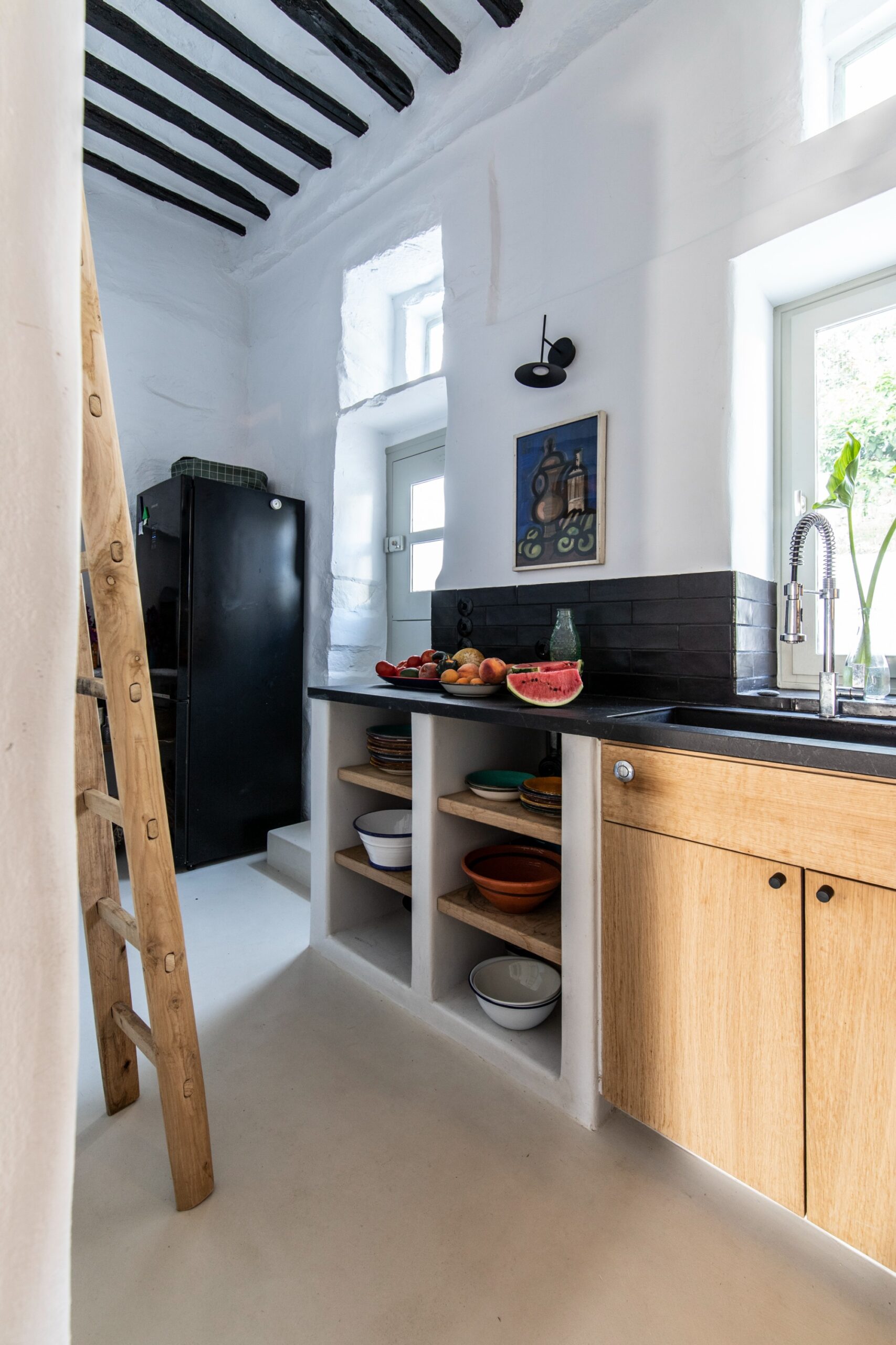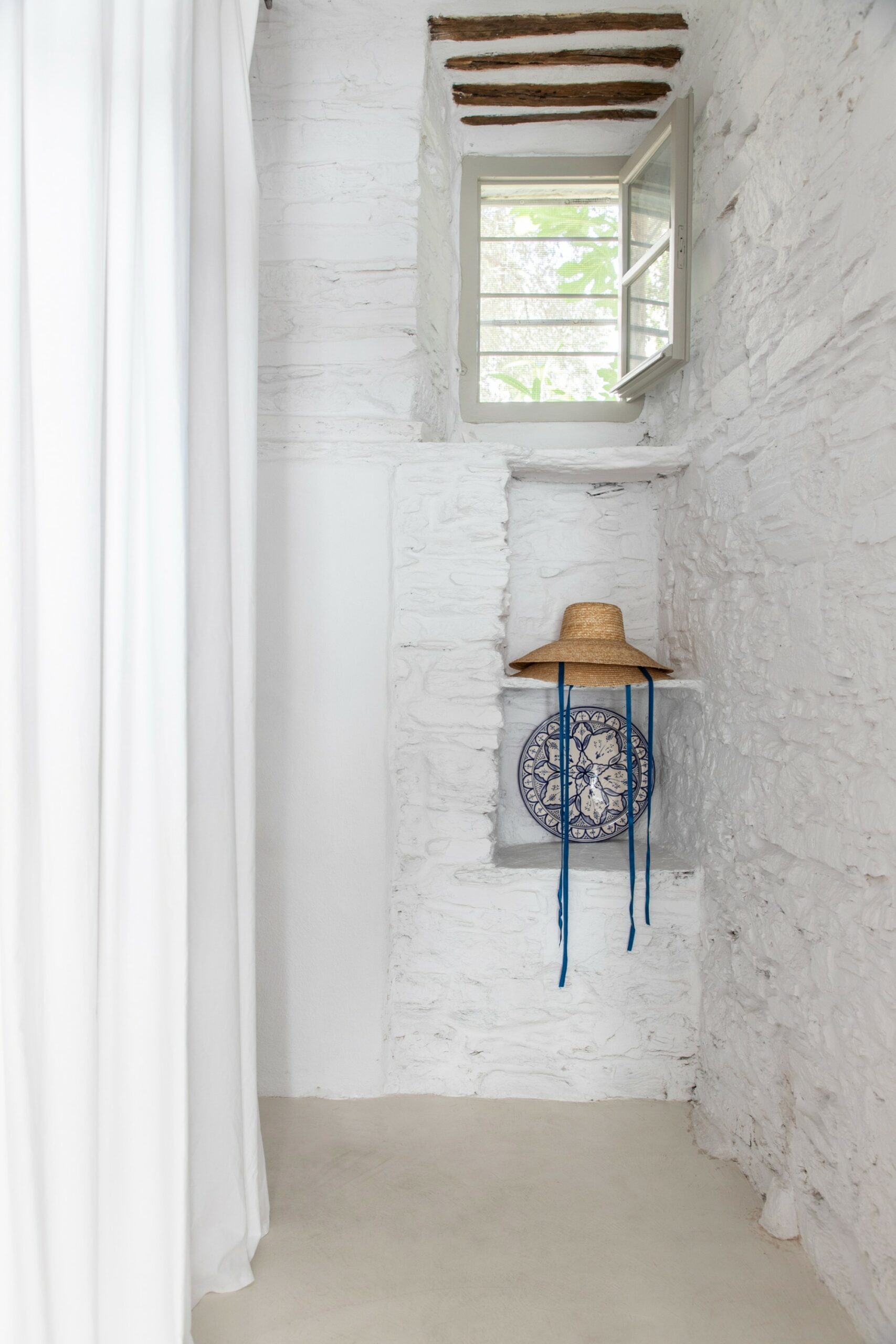 Το επόμενο στοίχημα ήταν να βρεθεί ένα σπίτι που θα μπορούσε να διαμορφωθεί σε μια λειτουργική κατοικία, η οποία θα διατηρεί τα παραδοσιακά της στοιχεία, καλύπτοντας της ανάγκες του ζευγαριού και των δύο παιδιών τους. Το παραδοσιακό σπίτι που επέλεξαν χτίστηκε αρχικά το 1910, στο ορεινό χωριό Φαλατάδος και αναπροσαρμόστηκε με λειτουργίες και χώρους σύγχρονης κατοικίας από το γραφείο Bobotis+Bobotis Architects.