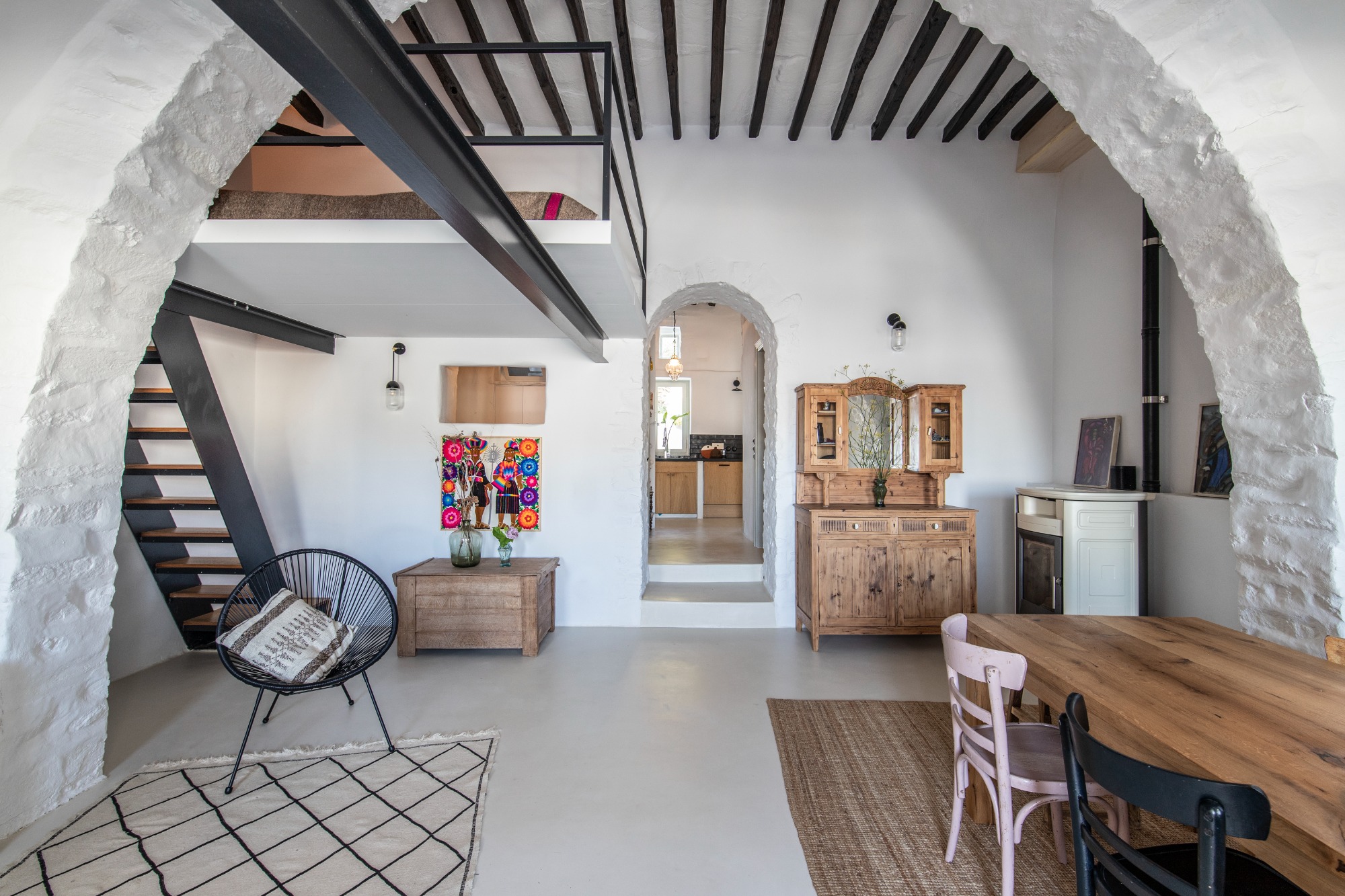 Αυτές οι ιστορικές μνήμες και χρήσεις αποτέλεσαν δυναμικές παραμέτρους για την αναδιαμόρφωση. Στο ανώτερο επίπεδο, η προσθήκη ενός παταριού που στηρίζεται σε ένα μεταλλικό δοκάρι, δημιούργησαν ένα επιπλέον «ανοικτό» υπνοδωμάτιο. Στο ισόγειο, το σημείου όπου παλαιότερα υπήρχε το πατητήρι, έχει μετατραπεί σε κρεβάτι με αποθηκευτικό χώρο. Ωστόσο, διατηρήθηκαν οι αρχικές δομικές λεπτομέρειες, όπως τα δοκάρια και τα βόλτα-αψίδες.