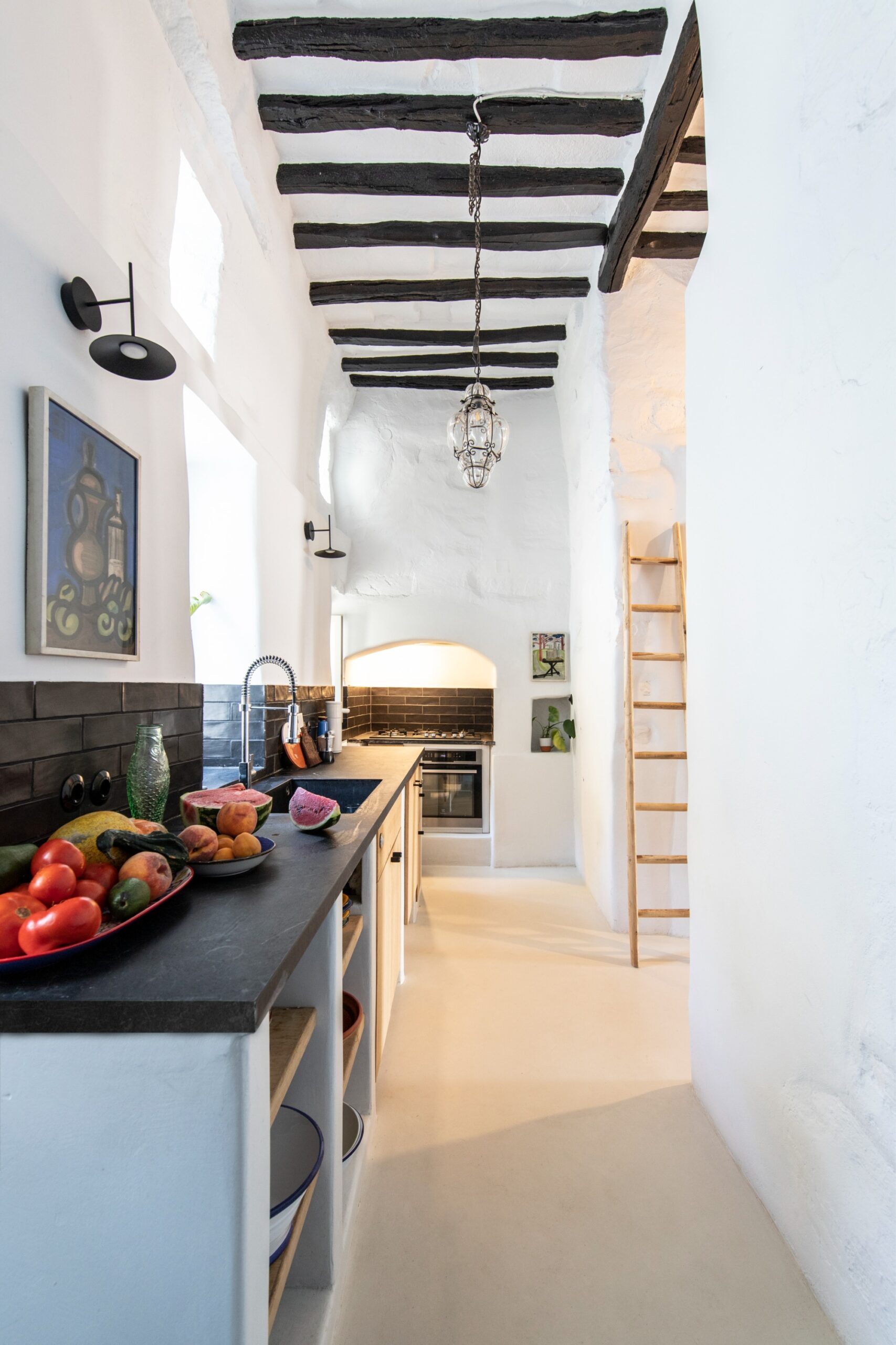 Το ανακαινισμένο σπίτι διαθέτει μεγάλη «ανοιχτή» κουζίνα. Μια σύγχρονη σόμπα ξύλου διοχετεύει μέσω αεραγωγών ζεστό αέρα σε όλο το σπίτι κατά τη διάρκεια του χειμώνα. Στο πίσω μέρος του σπιτιού, ένα μικρό μποστάνι με βότανα και λαχανικά– είναι σε άμεση επαφή με την κουζίνα και αποτελεί μέρος του κήπου του σπιτιού από όπου υπάρχει επίσης πρόσβαση στην οροφή, με θέα στο Ενετικό Κάστρο Εξωμβούργου.