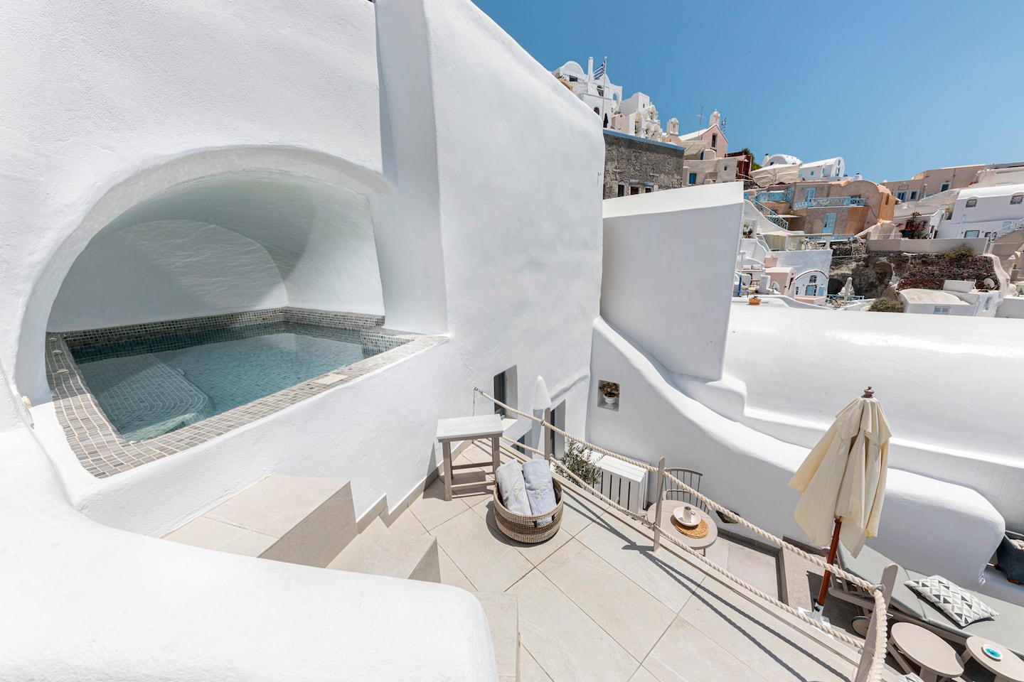 Πάντως, η δυνατότητα που έχει ο επισκέπτης να κάνει τζακούζι μέσα σε μία «σπηλιά» έχοντας αυτή την εκπληκτική θέα δεν είναι απλά «cosy».