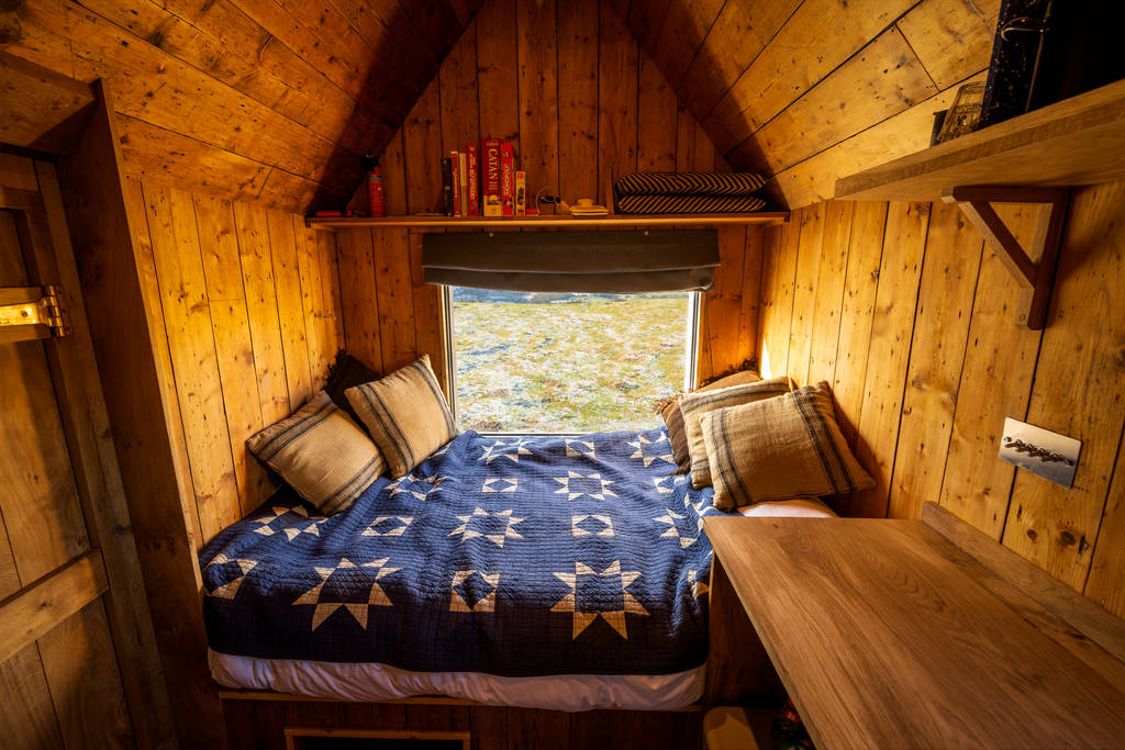 Πρόκειται για την πιο πρόσφατη προσθήκη σε μία αλυσίδα καταλυμάτων με την ονομασία Hinterlandes, τα οποία περιστρέφονται γύρω από τη φιλοσοφία των απομονωμένων διακοπών, σε απομακρυσμένα, δυσπρόσιτα σημεία. Οι ιδιοκτήτες υλοποίησαν την ιδέα τους το 2018 και πλέον έχουν στην κατοχή τους κάποια από τα πιο ιδιαίτερα και πρωτότυπα ξενοδοχειακά δωμάτια στη Μεγάλη Βρετανία. Ανάμεσα σε αυτά, ένα σχολικό λεωφορείο, ειδικά διαμορφωμένο ώστε να μπορεί να κοιμηθεί κάποιος μέσα σε αυτό και μία μαύρη, ξύλινη καμπίνα οικογενειακών διαστάσεων. Το καθένα από αυτά τα ιδιότυπα δωμάτια είναι εύκολο να μετακινηθεί και κάθε 28 ημέρες μεταφέρεται σε διαφορετικό σημείο, σε μία τεράστια φάρμα 200 εκταρίων, την οποία ο John Graham νοικιάζει από έναν φίλο του.