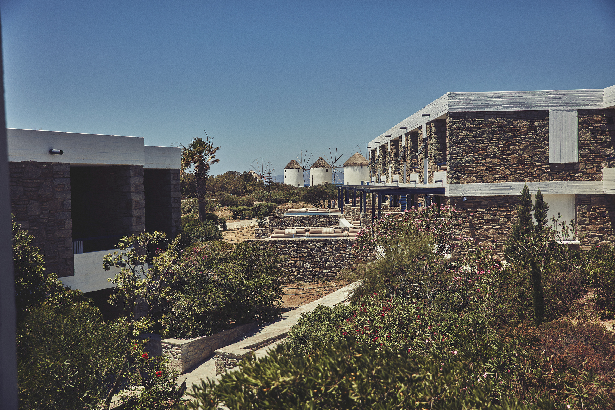 Το αγαπημένο ξενοδοχείο του Αριστοτέλη Ωνάση και της Τζάκι Κένεντι, που αργότερα μετονομάστηκε σε Mykonos Theoxenia και διατηρεί ως σήμερα το όνομά του, ανακαινίστηκε ριζικά και με απόλυτο σεβασμό στην μοντερνιστική αρχιτεκτονική του από τη διακεκριμένη ομάδα Vois Architects σε συνεργασία με το δημιουργικό γραφείο Cosmos Anima που επιμελήθηκε το σχεδιασμό των εσωτερικών χώρων. Το αποτέλεσμα δικαιώνει επάξια τον σύγχρονο ταξιδιώτη που αναζητά την αυθεντική εμπειρία του ελληνικού καλοκαιριού στην πιο εκλεπτυσμένη της μορφή, αυτό που στο Mykonos Theoxenia αποκαλείται “Greeknessence”, συνδυάζοντας την αυθεντικότητα εκείνης της δεκαετίας με τις υπηρεσίες υψηλών προδιαγραφών και τη σοφιστικέ αισθητική του διαχρονικού design.
