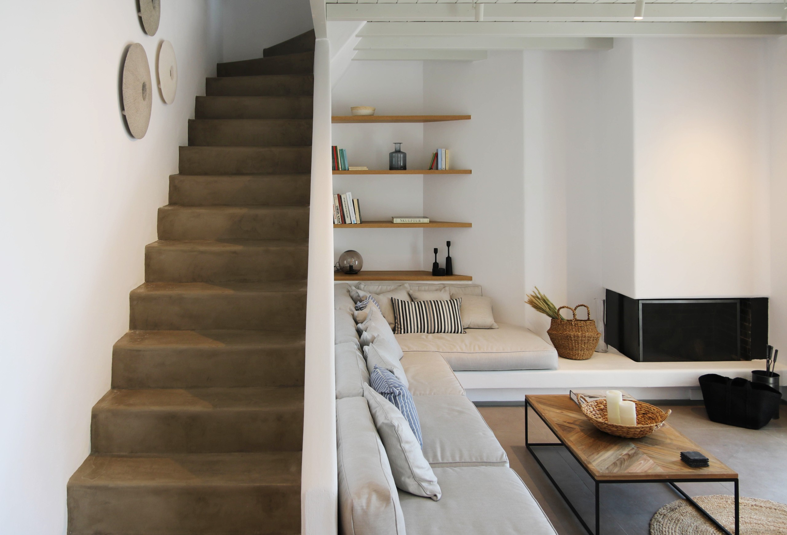 Χρηστικά έπιπλα και διακοσμητικά κάνουν άνετη την ζωή σε αυτή την κατοικία. Το μάτι ξεκουράζεται από το design τους και η χορογραφία τους αφήνει το σώμα να εκφραστεί.