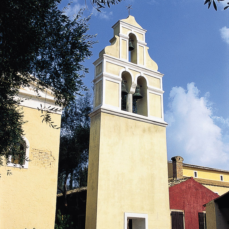 Δίπλα στο Καφενείο βρίσκεται το εκκλησάκι της Αγ. Ειρήνης με το παραδοσιακό κερκυραϊκό καμπαναριό, κτίσμα ξέχωρο από τον κυρίως ναό. Μέσα στο χωριό λειτουργεί και το Λαογραφικό Μουσείο, πλούσιο σε εκθέματα και μοναδικά αντικείμενα, που «αφηγούνται» τα ήθη, τα έθιμα αλλά και την καθημερινή ζωή στην Κέρκυρα του περασμένου αιώνα. Κατόπιν συνεννοήσεως μπορείτε να επισκεφτείτε και το παραδοσιακό ελαιοτριβείο, το οινοποιείο και το τυπογραφείο που επίσης αποτυπώνουν την πορεία των αντίστοιχων δραστηριοτήτων στο νησί.