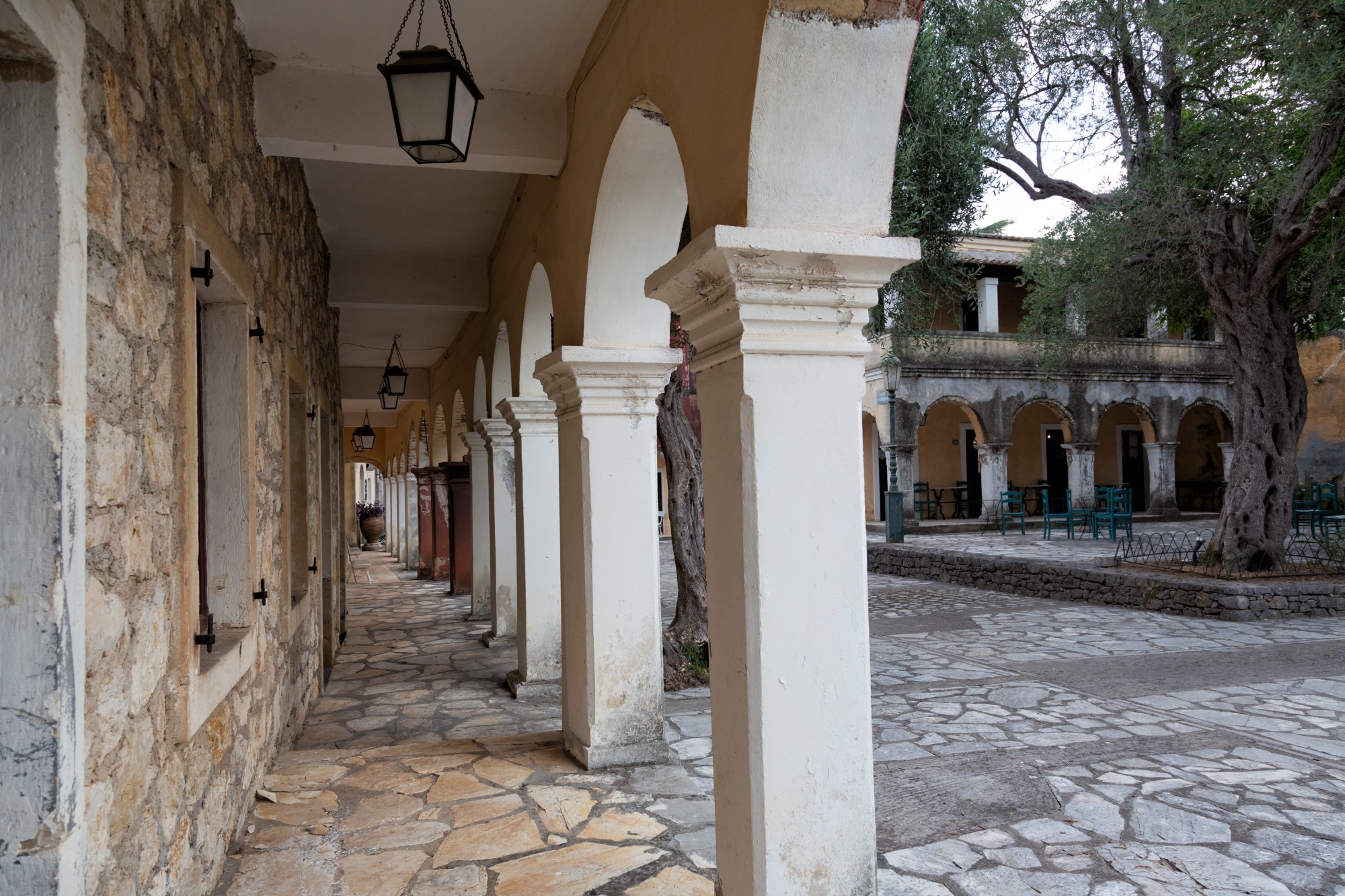 Αρκεί μια περιήγηση στο κεντρικό καντούνι του χωριού για να χαλαρώσετε και να μεταφερθείτε σε μια περίοδο που η Κέρκυρα ήταν ένα ήρεμο μέρος χωρίς τα πλήθη των τουριστών που έρχονται πια στο νησί από κάθε γωνιά του πλανήτη· εκεί μπορείτε να σουλατσάρετε χωρίς κανένας θόρυβος όπως οι κόρνες των αυτοκινήτων να διακόπτει τη βόλτα σας. Μόνο τα σπουργίτια θα σας «ενοχλήσουν» χαριτωμένα, τα σπουργίτια που τιτιβίζουν κουτσομπολεύοντας τους επισκέπτες καθώς πετούν πάνω από τις στέγες των κτιρίων.