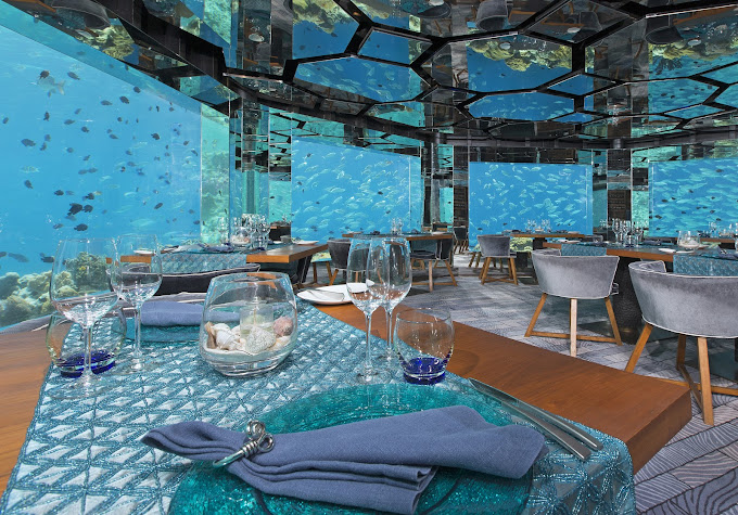 Θάλασσα και Μαλδίβες, έχουν εξελιχθεί σε έννοιες συνώνυμες. Εκτός από τα πολυτελή resort με διανυκτερεύσεις πάνω στο νερό, τα τροπικά αυτά νησάκια φιλοξενούν και κάποια από τα διασημότερα υποθαλάσσια εστιατόρια του κόσμου, τα οποία συνήθως ανήκουν σε ξενοδοχειακά brands και λειτουργούν στις εγκαταστάσεις τους. Εντυπωσιακό είναι το γεγονός ότι πολλά από αυτά τα εστιατόρια, προσφέρονται και για γαμήλιες τελετές και δεξιώσεις.