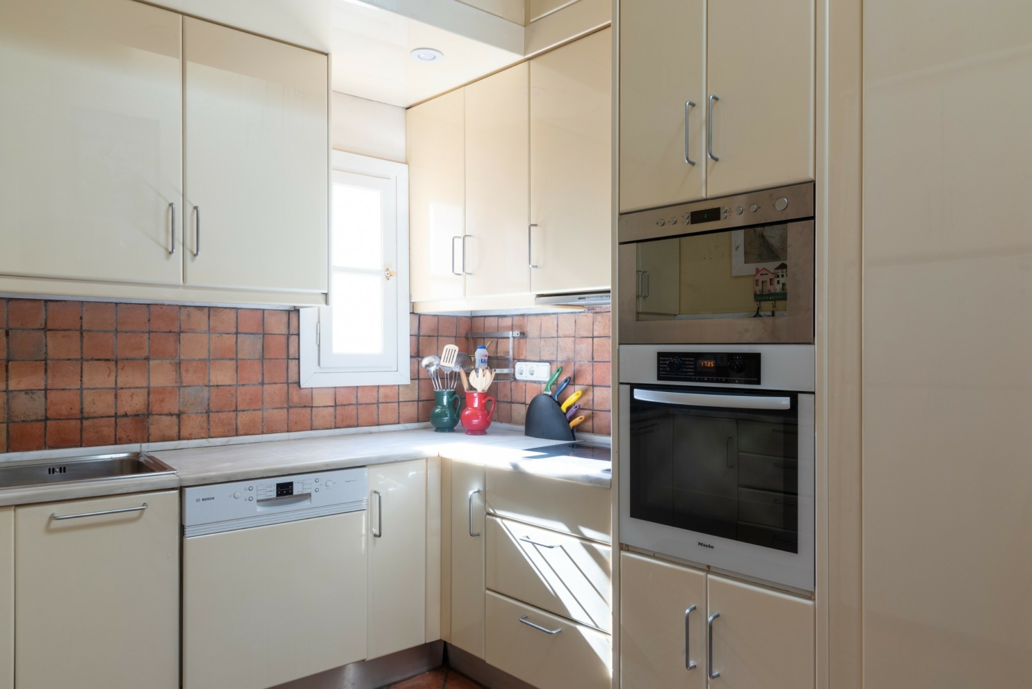 Στον ίδιο όροφο υπάρχει μια πλήρως εξοπλισμένη κουζίνα, ένα υπνοδωμάτιο με δωμάτιο-ντουλάπα και ένα μπάνιο.