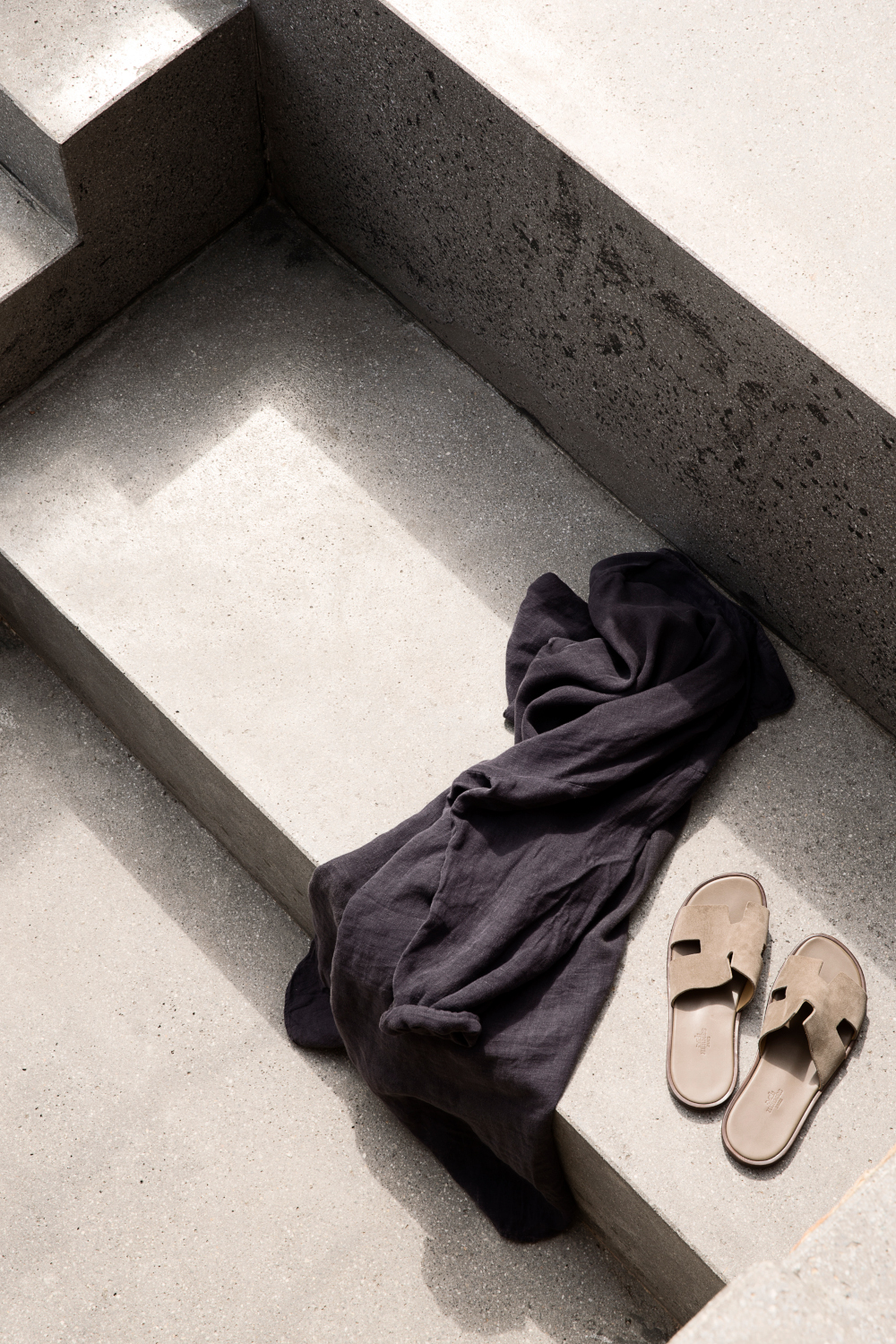 Η είσοδος βρίσκεται στο πίσω μέρος του κτιρίου, ακολουθώντας ήπια κάθοδο μέσω μικρών αυλών φυτεμένων με τοπικά αρωματικά βότανα-και οι οσμές του χώρου έχουν μελετηθεί με τέτοιον τρόπο που το περιβάλλον ανεβάζει τις αισθήσεις σε ανώτερο επίπεδο. Ο κύριος όγκος του κτιρίου φιλοξενεί τους κοινόχρηστους χώρους, ενώ ο λίγο ψηλότερος όγκος που είναι επενδεδυμένος με τοπική πέτρα στεγάζει τον ιδιωτικό χώρο του ζευγαριού.